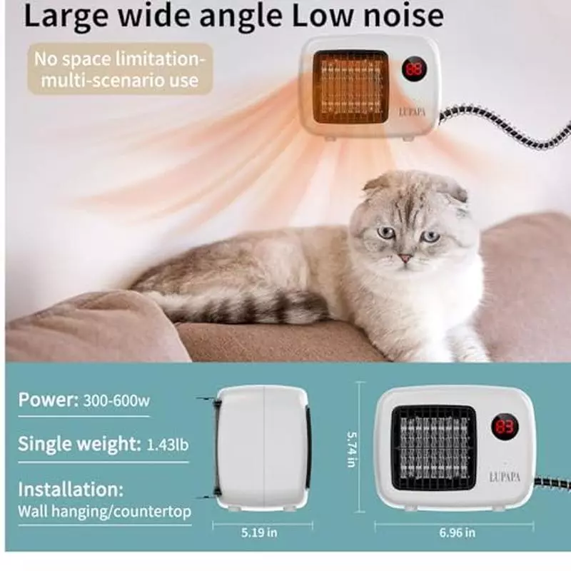 You may also like Indoor Radiant Space Heater Adjustable Thermostat 1500W Overheat Protection NEW 53.93 USD 56.77 USD Free shipping 5% off Infrared Heater Carbon Electric Radiant Heater 21" Indoor Tower Heater 800W US 52.56 USD 55.33 USD Free shipping 5% off Ceramic Portable Space Heater Indoor Electric w/ Overheat & Tip Over Protection 46.59 USD 49.04 USD Free shipping 5% off Portable Space Heater w/Remote Control 3D Oscillating Thermostat 3s Fast Heating 62.28 USD 65.56 USD Free shipping 5% off Double Tank Top Outdoor Propane Heater MH30T (Propane Cylinder not Included) 129.3 USD 136.1 USD Free shipping 5% off Portable Electric Fireplace Heater with 3D Flame Ceramic Heater Fan 1500W/750W 74.09 USD 77.99 USD Free shipping 5% off About this item Powerful and Low Noise Pet House Heater: LUPAPA pet house heater adopts 120V voltage, 300W and 600W two modes, which can be adjusted according to your preference, and the noise of the air supply is less than 45 decibels, which can provide a quiet and warm environment for your pet. Thermostatic design: This pet house heater has a built-in thermostat, but the room temperature exceeds the safe temperature range will automatically stop working, when the room temperature is lower than the appropriate temperature the heater will restart heating, not only to keep your pets in a warm and comfortable environment, but also to extend the service life of the pet house heater. Wall-mounted pet house heater: Our dog house heater is equipped with a separate safety bracket and rubber handle screws, easy to disassemble, we suggest to find a position slightly higher than your pet, then drill holes to install the bracket, and finally hang the heater on the heater can be installed; it can also be placed on the desktop and other flat surfaces. Safe pet heater: The pet house heater uses in-line switching power supply and comes with 59 inches long anti-bite wire, the power button is far away from the body to avoid pets from accidentally touching the power on, and the steel spring is used to protect the power cord to prevent pets from tearing the power cord. To prevent pet hair from entering the heater, it is equipped with a removable magnetic anti-fur net to protect pets in all aspects. Wide range of applications: not only for dog houses, cat cages, chicken coops, rabbit houses, pet pig houses, hamster houses, etc. , but also for pregnant production and older pets to keep warm. Brand:LUPAPA Special Feature:Overheat Protection Color:White Form Factor:Pedestal Indoor/Outdoor Usage:Indoor Power Source:Brushless Motor Heating Method:Radiant Item Weight:2. 5 Pounds Heat Output:600 Watts Foldable Weight Bench Press Home Gym Incline Decline Sit-up Bench Assemble-Free 74.09 USD 77.99 USD Free shipping 5% off 28" Firewood Split Wood Load Heavy Pick Tool Rounds Sturdy Lift Drag Lightweight 51.21 USD 53.91 USD Free shipping 5% off Penny Candy Glass Jar with Lid Cookie Jar 1 Gallon Food Storage Jar for Snacks 13.03 USD 13.72 USD Free shipping 5% off 35"Octagonal Fire Pit Outdoor Fire Pit Wood Burning Firepit Bonfire Backyard US 103.73 USD 109.19 USD Free shipping 5% off Sunflower Coarse Kernels Hearts No Waste No Mess Bird Seed 50 Pounds 111.14 USD 116.99 USD Free shipping 5% off 8 Ounce Ball Peen Hammer Wood Handle Automotive Tool Drop Forged Steel New 9.82 USD 10.34 USD Free shipping 5% off 12 in Aluminum Nonstick Fry Pan Soft-Touch Handle Perfect Sauteing Cooking New 25.64 USD 26.99 USD Free shipping 5% off A23 High Output 4060 Lumen Super Bright LED Light Bulb 30W Warm White E26 Base 10.5 USD 11.05 USD Free shipping 5% off Ergonomic Gaming Chair Office Computer Executive Chair Leather Desk Chair Blue 126.2 USD Free shipping Wooden Gun Rack Display with Holder Floor Standing Indoor Rack Storage Garage 95.63 USD 100.66 USD Free shipping 5% off 9.5 Inch Tempered Glass Pie Plate Fluted Edge Oven Safe Baking Dish Decor US 10.39 USD 10.94 USD Free shipping 5% off 2 lb Dead Blow Hammer Non-Marring Soft Face Steel Shot Handle DIY Tool New 15.24 USD 16.04 USD Free shipping 5% off