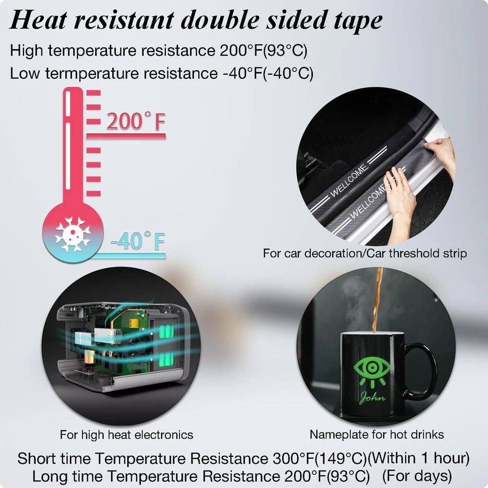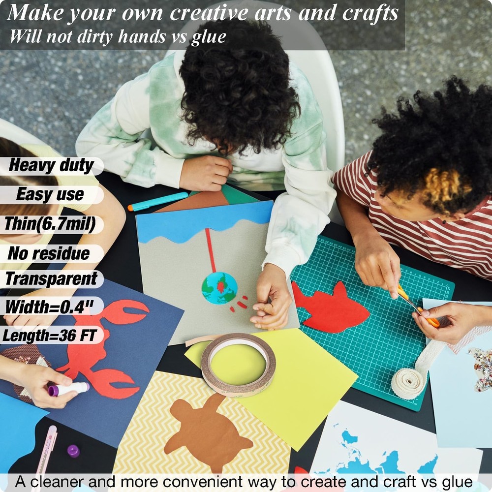 Thin Double Sided Tape,Waterproof,Heat Resistant,Removable,Clear 300LSE Adhesive Strips for Stick Led Strip,Poster,Scrapbook,Car,Art,Fabric,Electronic,Indoor and Outdoor,0.4 inch x36Ft Product Details Size: 0.4 inch x36 FT Brand: HIKIYEAT MPN: Thin double sided tape UPC: 717981457951 EAN: 0717981457951 Brand: HIKIYEAT Color: clear Material: Acrylic acid,Double sided tape Number of Items: 1 Recommended Uses For Product: Arts And Craft,Scrapbooking,Rugs,LED strip lights,Posters,Car Decor,Festical Decor, Outdoor, Carpet, Indoor, Fabric See more Package Dimensions : 5.71 x 5.31 x 0.47 inches; 1.45 ounces Item model number : Thin double sided tape Date First Available : August 1, 2023 Manufacturer : Youchuang Country of Origin : China Best Sellers Rank: #12,635 in Industrial & Scientific (See Top 100 in Industrial & Scientific) #19 in Adhesive Transfer Tape #19 in Adhesive Transfer Tape Customer Reviews: 4.2 4.2 out of 5 stars 140 ratings Multipurpose--This two sided tape heavy duty is extensively used for crafts,led strip lights,scrapbooking,rug, Electronic maintence,easy to use. Indoor and outdoor use,at home or in your garden or under water Features--300LSE is a ultra thin tape,thickness is 6.7mil(0.17MM),strong adhesion. Transparent and waterproof.Work temperature is between -40 to 200 F (-40 to 93 C).There is no glue remain once you remove this tape Easy to use-- Easy to pull out of the double sided adhesive tape roll, use scissors to cut and install. Its easy to remove by hand if you want.Takes one minute to stick a common size of poster on the wall Applicable--This 2 sided tape can bond many materials ,such as metal, leather, vinyl, glass, marble, paper, plastic...... Especially it have good performance to PTEF, polyethylene, polypropylene.Great for crafts or DIY your automotive decor or prototype assembly or repairment of electronics. Application Techniques--This clear double sided tape heavy duty has very high initial adhesion and after applying it 72 hours the adhesion is the best.Ideal tape application temperature range is 70F to 100F (21C to 38C).The working temperature is -40 to 200 F