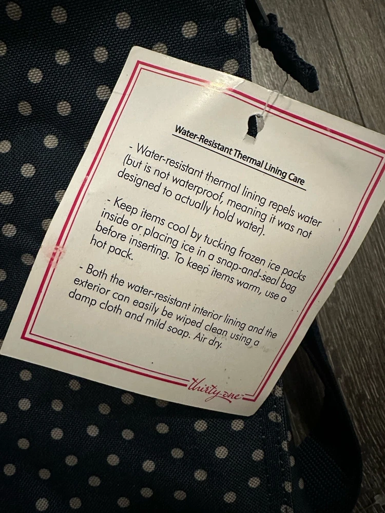 This Thirty-One Lunch tote bag is perfect for a day at the beach or a picnic in the park. The bag is designed with a blue exterior color and features an etched shells letter "B" design. It has a zip closure and measures 12 inches in width, 13 inches in height, and 7 inches in depth. The bag is made of polyester and has a nylon handle/strap material in blue color. The tote bag is insulated and has a gray lining color. The product line is Thirty-One Lunch and it is a medium-sized bag.