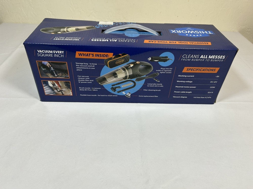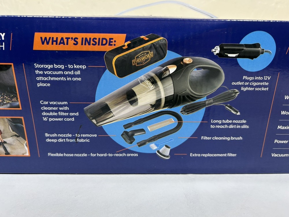 ThisWorx Car Vacuum Cleaner 12V Corded Cig Handheld Vac 16ft Cord (New Sealed).