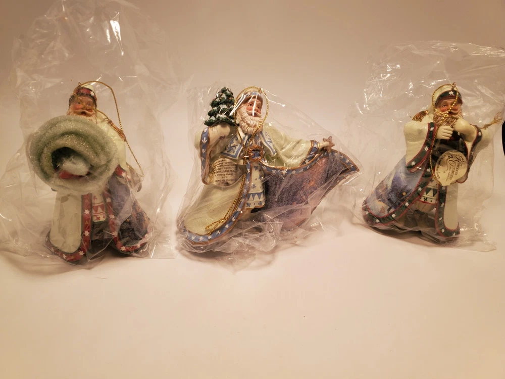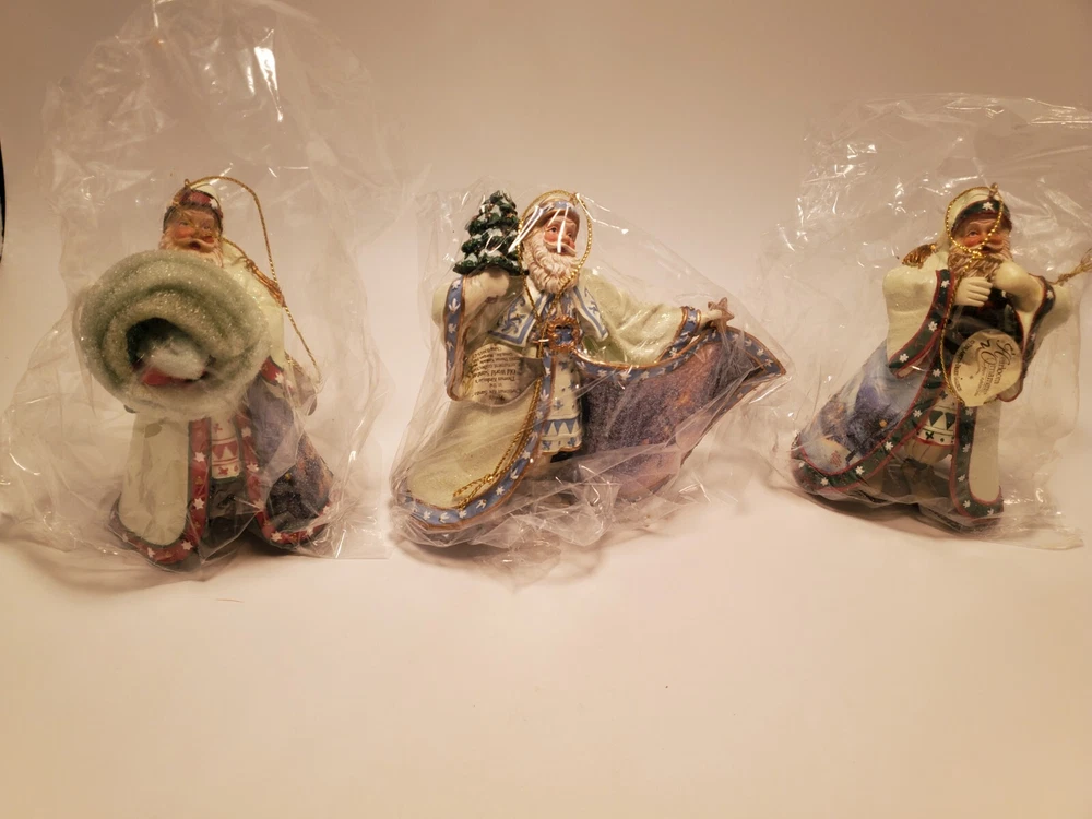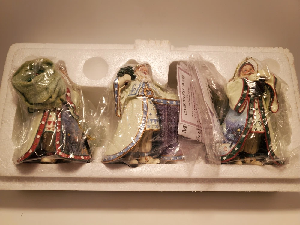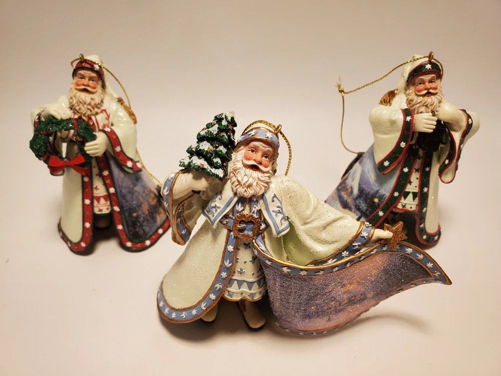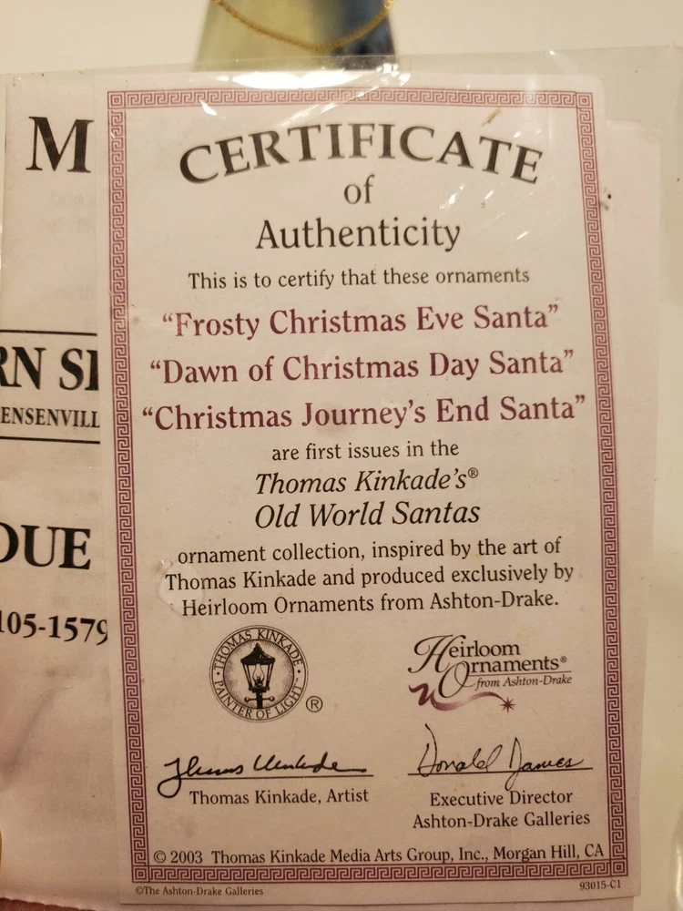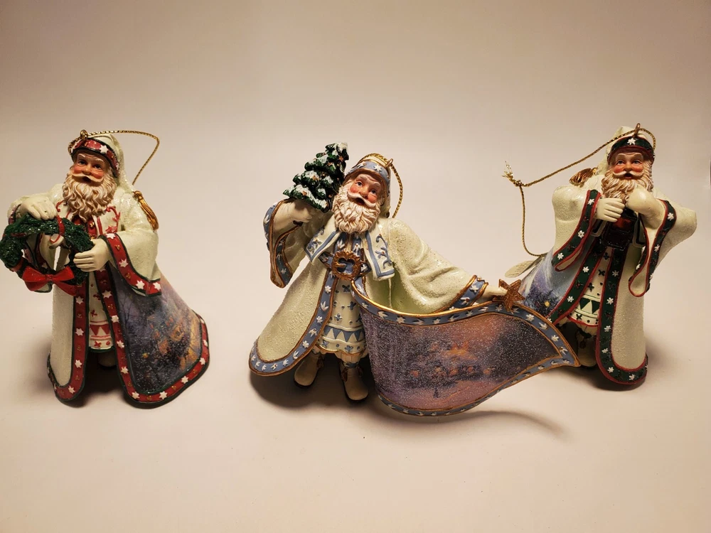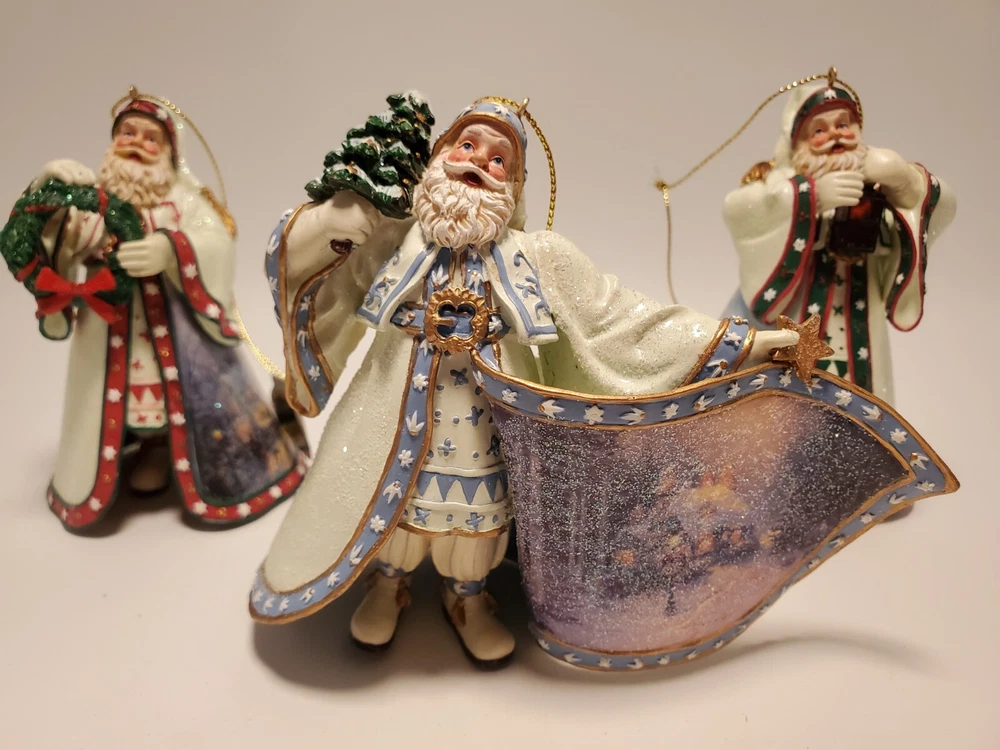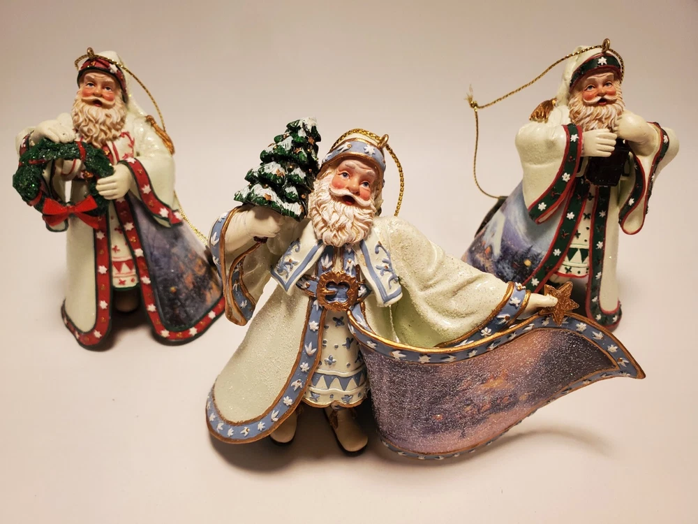 Thomas Kinkade Old World Santa Christmas Ornaments Ashton Drake Lot of 3 (Set 1) #93015 NOS from storage of a closed gift shop; In original styrofoam packaging (styrofoam scuffed from being in storage so long); Includes COA and labels. Ornaments in excellent-new condition.
