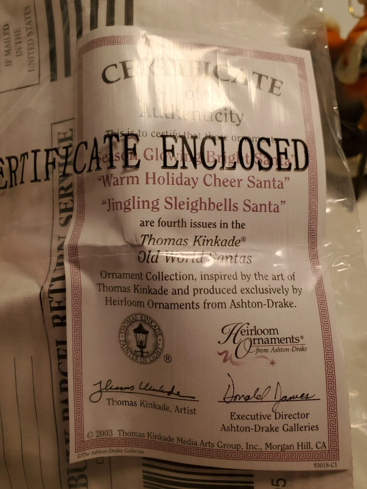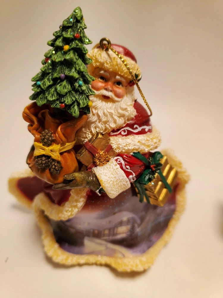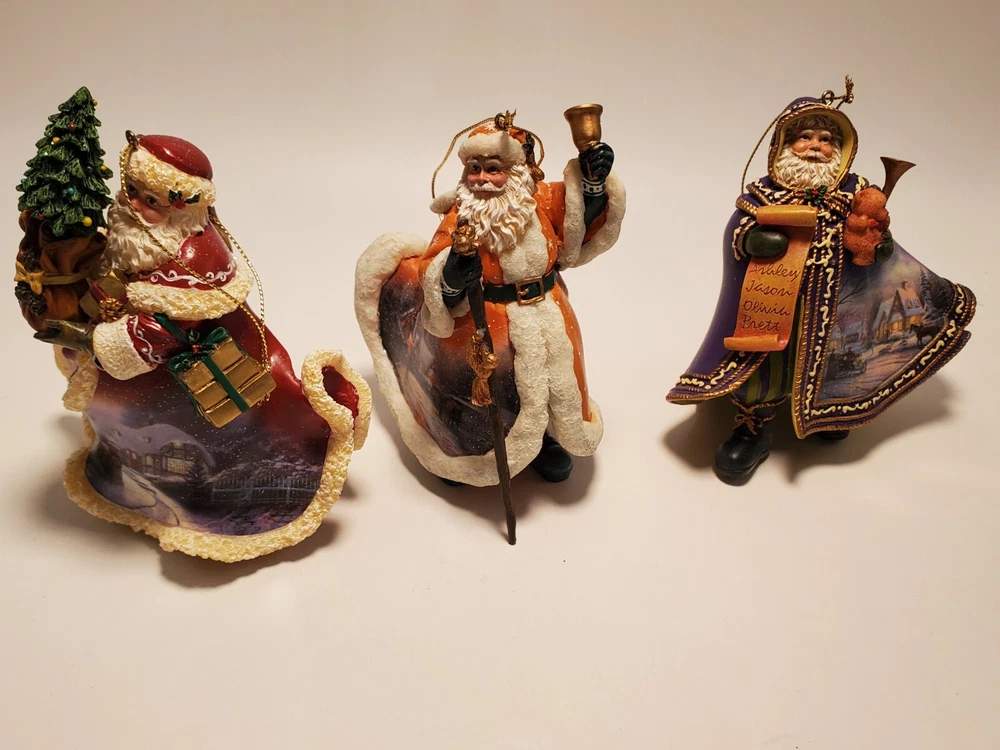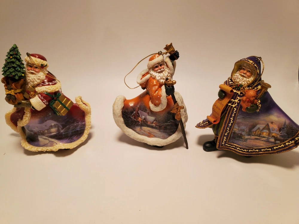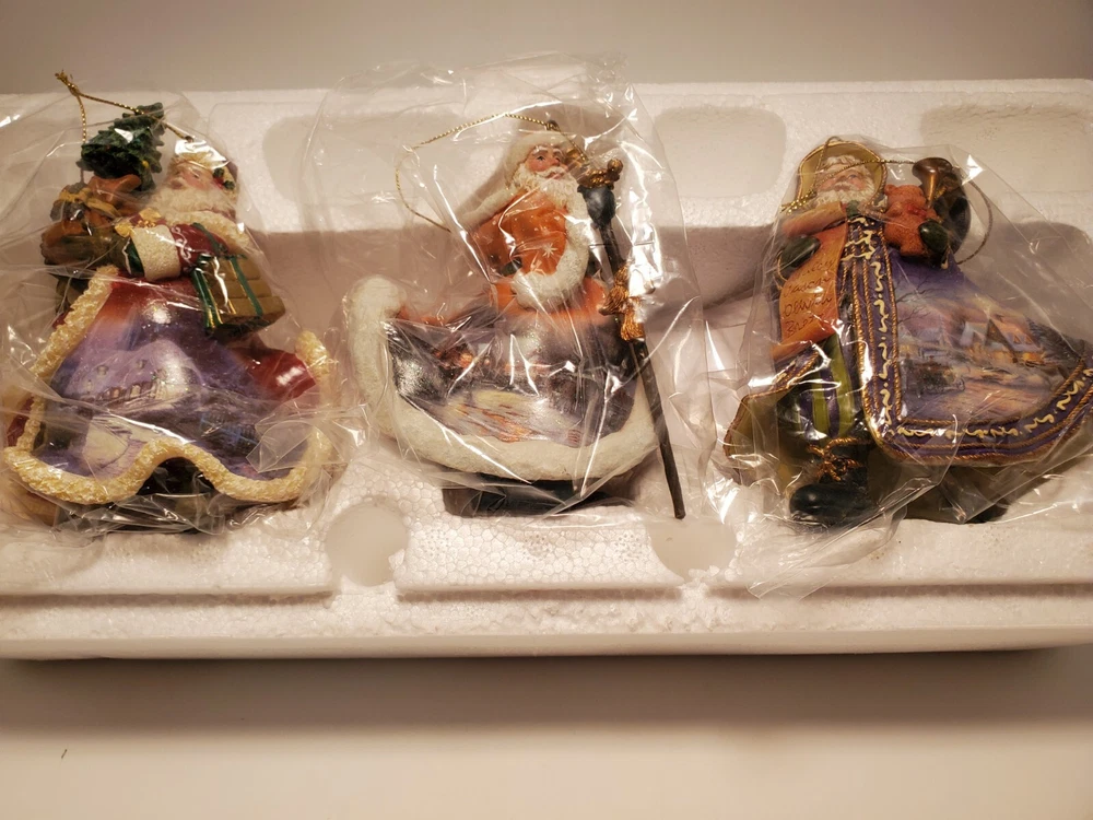 Thomas Kinkade Old World Santa Christmas Ornaments Ashton Drake Lot of 3 (Set 4) #93018 NOS from storage of a closed gift shop; In original styrofoam packaging (styrofoam scuffed from being in storage so long); Includes COA and labels. Ornaments in excellent-new condition.