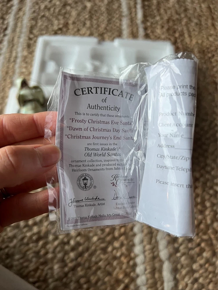 Thomas Kinkade Old World Santas Ornament Collection #1 with Certificate of Authenticity. Comes in original packing.