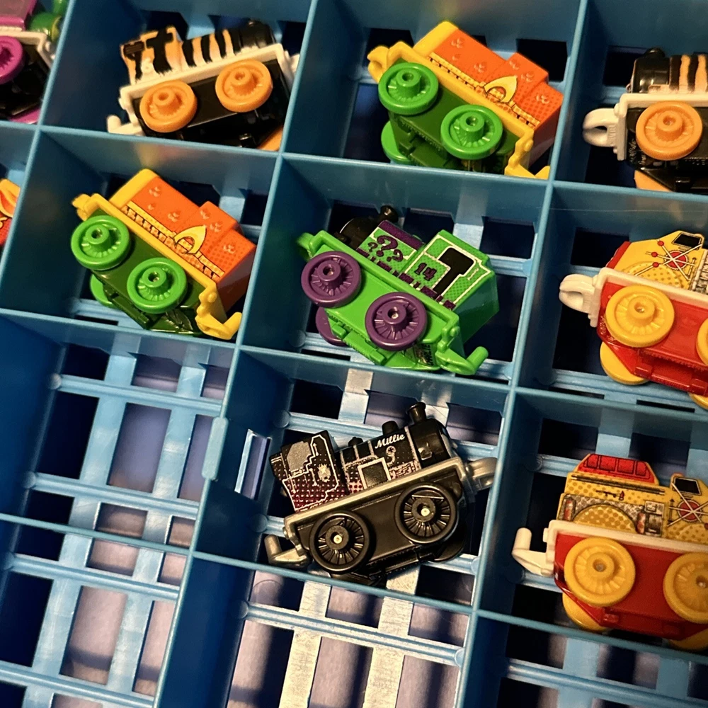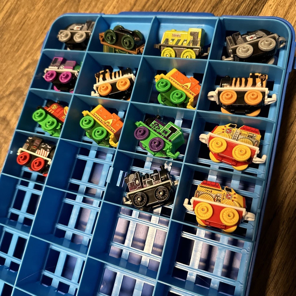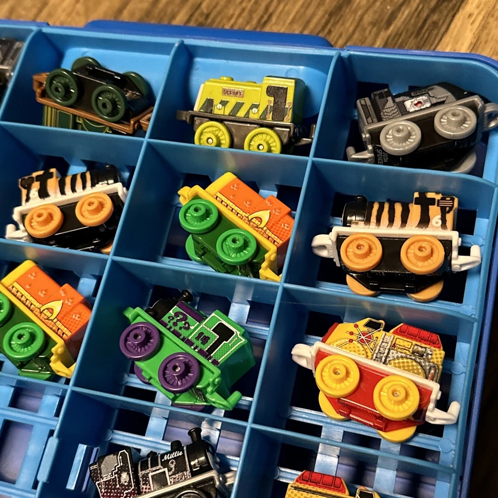 This lot includes 15 mini trains from the Thomas & Friends franchise, along with a carrying case. These action figures are perfect for collectors or children who love to play with toy trains. The brand is known for its high-quality toys and attention to detail, making this lot a great addition to any collection. The vehicles are all in great shape and ready for display or play. Don't miss out on the chance to own these charming mini trains and their carrying case.