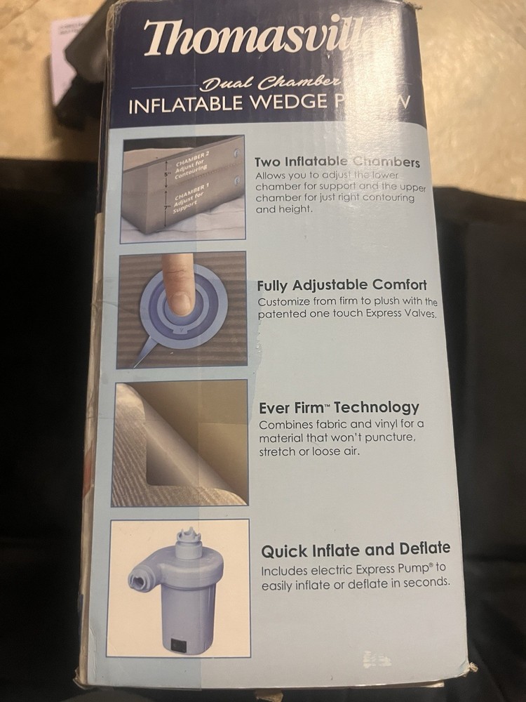 Thomasville Dual Chamber Inflatable Wedge Pillow for Travel Lounging Comfort