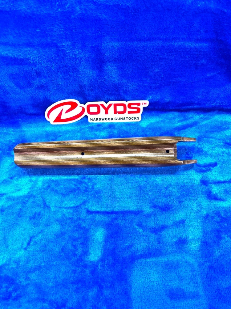 Boyds Nutmeg Encore Rifle Forend with fasteners Enhance your Thompson Center Encore Rifle with this Nutmeg colored Hardwood forend grip. This durable grip is made from laminated hardwood materials and measures 10 inches in length. It comes with a sling attachment stud, ensuring a more comfortable and hassle-free hunting experience. This forend grip is suitable for Encore rifles and is available in Nutmeg color. It is "brand new" and comes with black oxide fasteners. The grip is made in the United States, and it is a part of the hunting and sporting goods categories. Get your hands on this high-quality forend grip for your Thompson Center Encore rifle today! Calipers and their case are not included.