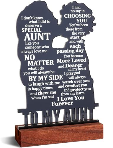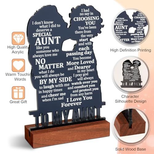 Return Policy Fast Delivery Trusted seller Christmas Gifts for Aunt, Valentines Day Gift for Aunt, Aunt Gifts from Nephew, Best Aunt Ever Gifts, Birthday Gifts for Aunt, Auntie Gift Ideas, Aunt Mother's Day Gifts, Aunt Gifts for Christmas Product Description Perfect Aunt Gifts from Nephew: Searching for the ideal aunt birthday gifts or birthday gifts for aunt? This heartfelt piece is an excellent choice. It beautifully captures the essence of the special bond between a nephew and his aunt. Made with love and care, this gift will remind her how special she is and how much she is cherished. It’s also one of the best aunt ever gifts that will show your appreciation and love. Best Aunt Ever Gifts for Any Occasion: Whether it's for her birthday, Mother's Day, or Christmas, this is among the top auntie gift ideas you can find. Show your aunt that she is always in your thoughts with a unique and meaningful gift. Crafted to perfection, it is a wonderful way to express your feelings. This gift is not just for birthdays but also makes for wonderful aunt mothers day gifts and Christmas gifts for aunt. Thoughtful Aunt Birthday Gifts: Make her day extra special with one of the most thoughtful birthday gifts for aunt. This gift is a lovely reminder of how much she means to you. It’s perfect for any occasion, be it her birthday or just a day you want to make her feel special. Celebrate the bond you share with a gift that speaks volumes. Aunt Gifts for Christmas: As the holiday season approaches, finding the right Christmas gifts for aunt becomes a priority. This beautiful piece is one of the best aunt gifts for Christmas that she will treasure. It’s a touching way to let her know how much you love and appreciate her. This gift is sure to bring a smile to her face and warmth to her heart. Unique Auntie Gift Ideas: Struggling to find unique and meaningful auntie gift ideas? Look no further. This gift combines elegance and sentiment, making it a standout choice among gifts for aunts from nephew. It’s a versatile gift that fits any occasion, whether it's a birthday, Mother's Day, or Christmas. Show your aunt how much she means to you with this exquisite piece. Shipping Returns Payment Shipping Shipping is FREE to all addresses other than APO/PO boxes in the lower 48 states. All our stock ships from US-based warehouses. Shipped via USPS or UPS (depending on location and package weight) Unless stated otherwise, all orders will ship within 24-72 hours of your payment being processed. Check our feedback to see the great reviews of FAST shipping we offer. Returns Seller does not accept returns Payment We currently accept payment via eBay managed payments only. Once payment is cleared, we will dispatch your shipment within 1-3 business days. Please refer to the "Shipping" tab for more information regarding shipping speed to your destination.