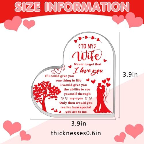 Return Policy Fast Delivery Trusted seller To My Wife Wedding Anniversary Birthday Gifts Ideas for Wife from Husband Aniversario Gift for Her Desk Accessories Acrylic Plaque Product Description Wife Birthday Gifts from Husband - Perfect For Adding A Personal Touch To Your Wife'S Christmas Stocking Or Birthday Celebration. Thoughtful And Meaningful Gifts That Show How Much You Care To My Wife/Wife Birthday Gift Ideas - Creative And Practical Suggestions To Make Her Holiday And Special Occasions Unforgettable. From Desk Accessories To Elegant Acrylic Plaques, These Gifts Are Sure To Delight Gifts for Wife - Not Only A "Gift For Your Wife", It Can Also Be Used As A Table Decoration Or Stocking Filler. The Exquisite Size Of 3.9*3.9 Inch Perfectly Integrates Into The Home Or Office Space, And The Clarity Of Acrylic Reflects The Light And Shadow Of Everyday Happiness Product Details - Using High-Grade Acrylic Material, Thickness Of Up To 0.6 Inch, Strong And Clear, Each Decoration Is Carefully Polished By The Craftsmen, To Ensure That Every Expression Of Love Is Lasting Shine, Lasting Packing - All The Gifts Are Carefully Packaged In High-Grade Velvet Bags, Adding a Sense Of Ceremony While Protecting The Ornaments From Scratching, So That The Transmission Of Love Is More Intimate And Noble Shipping Returns Payment Shipping Shipping is FREE to all addresses other than APO/PO boxes in the lower 48 states. All our stock ships from US-based warehouses. Shipped via USPS or UPS (depending on location and package weight) Unless stated otherwise, all orders will ship within 24-72 hours of your payment being processed. Check our feedback to see the great reviews of FAST shipping we offer. Returns Seller does not accept returns Payment We currently accept payment via eBay managed payments only. Once payment is cleared, we will dispatch your shipment within 1-3 business days. Please refer to the "Shipping" tab for more information regarding shipping speed to your destination.