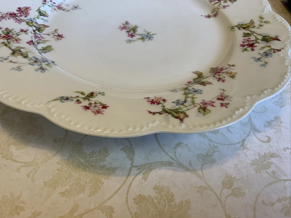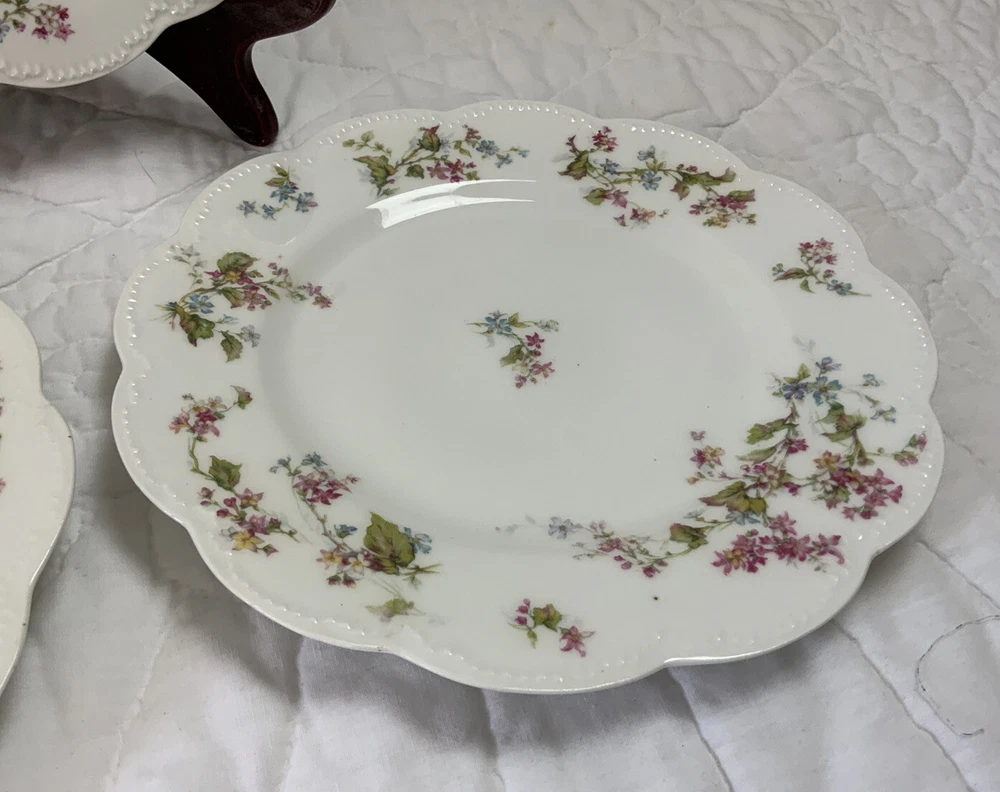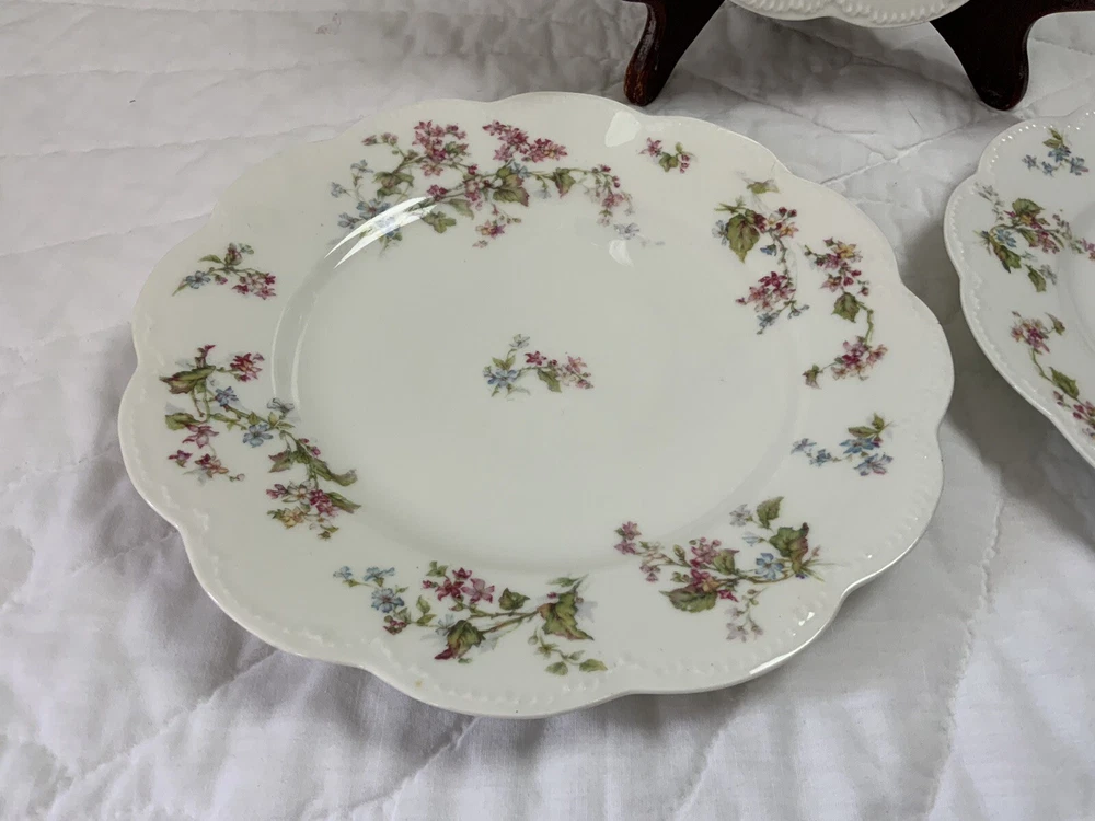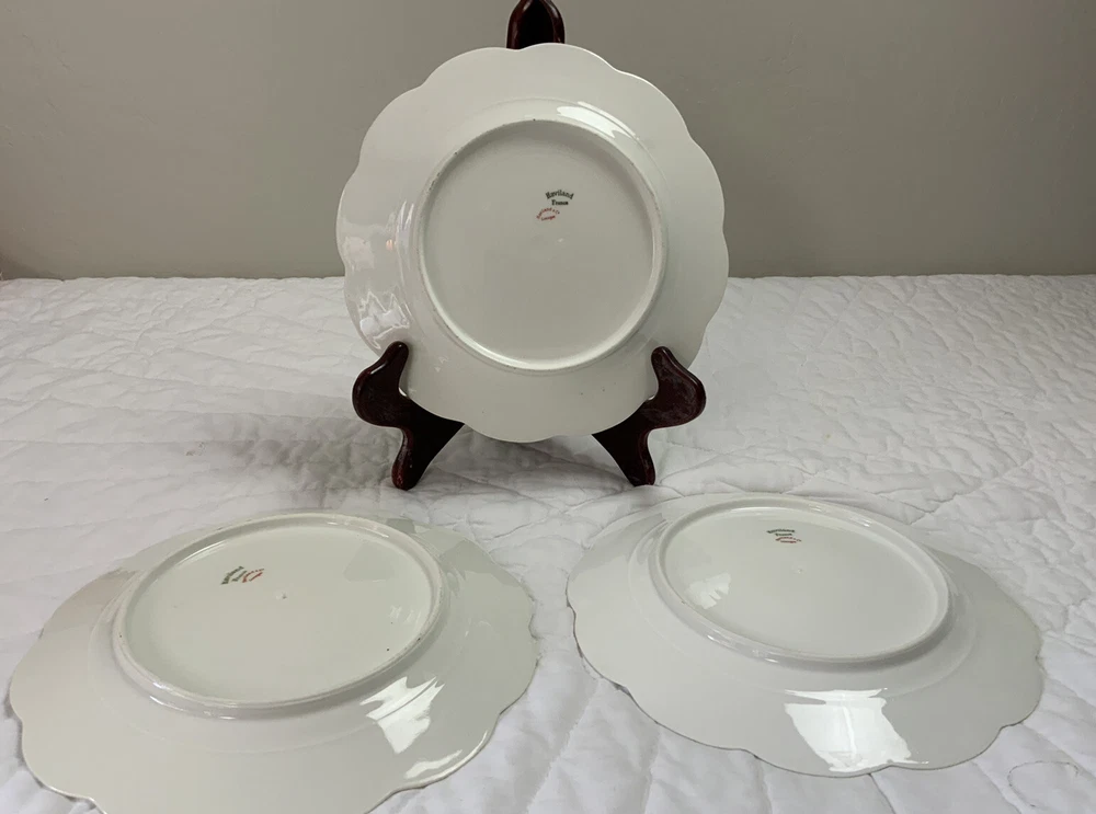 Up for sale is a set of three Haviland Limoges dinner plates. Antique plates made in France. Signed on the back Haviland France Limoges. The design is floral. Very pretty, very delicate design. The colors are off white, blue, green, yellow. Scalloped, dot edges. Measures 9 3/4โ round. In diameter. Hand painted. Made in France. Antique plates. Set of 3. Very, very good condition. One very slight spot of roughness, about the size of a pinhead. No chips, no cracks, no hairlines. Thank you and happy bidding. I will combine shipping charges. Smoke free home. Please make payment in three days. ~~~~Please visit my eBay store: webbsamericancountry1๐บ๐ธ for over 2000 vintage and collectible items.~~~~๐บ๐ผ๐น