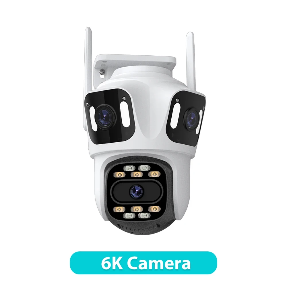 Three Lens PTZ IP Camera Outdoor 6K HD three Screen Wifi Security Camera Auto Tr This product data sheet is originally written in English. Three Lens Three Screens 6K HD WIFI IP Camera Two different cameras for sale * 4K Camera supports Dual screen real-time monitoring. * 6K Camera Three screen real-time monitoring. 3-Lens 3-Screen * There are 3 video screens in APP, the upper two is fixed position camera and the lower one is PTZ camera. Auto tracking *After locking the target, the camera will adjust the pan rotation automatically, Tracking Moving Human and push alerts notifications to your Smartphone. AI Humanoid Detection *When the security camera detect motion, Led show up to scare thief; *Cameras can automatically track people's whereabouts in view. Immersive 6K Super HD & Starlight Night Vision * 6K image has more exquisite,better light saturation,lower noise and other advantages,infrared night vision is up to 30m,color night vision is up to 50m. * A llowing you to see what you need. Whether it is someone sneaking in at midnight or a raccoon's break-in, all will be captured by the camera in close-up detail. Realizing real-time images from multiple cameras with ONE camera ne camera * With just one camera, you can enjoy the real-time monitoring effect of multiple cameras. You don't need to order other cameras to view more images, which can save money. An instant connection *99% reduction in connection failures. Modernized antenna, powerful signal *Equipped with external high-gain enhanced 5dBi antenna, your camera can receive a wider range of signals. Smart Pan/Tilt/Rotate & Waterproof IP66 *Remote control the surveillance camera horizontal rotation 355°, you can monitor anywhere and any details you want via mobile App. *Equipped with waterproof level IP66 to make the camera survive various of harsh environment. Operational temperature -30°~ 50°, you can absolutely take it easy to put it outside. You might need to buy such a extention cable, please click on the picture below to learn about the product. *Please note the cable is not included!!! If the installation place is not near to the power supply, maybe you need this extension cable. Real-Time Two Way Audio Communication * You will get a camera with microphone and speaker. You can talk with your family at any time, anywhere like working, traveling, or on a business. Support SD card & cloud service (Need to pay) *Insert a TF card up to 256GB (TF can be selected as needed) helps you save the video you are not willing to delete Wired connection & Wireless connection *You could select the convenient connection as you want . Sometimes you might just have one way to connect the camera , don't worry , this camera supports wireless and wire connection at the same time. ICSEE App Remote Access *Share the same Vision with your families , let all of you protect and pay more attention to your house. *P2P technology let you be able to view the live situation of your house wherever you are , just with the P2P account on the app via your Smartphone or tablet . Product Overview 1x PTZ Camera 1x User Manual 1x Power Supply 1x Screws Bag How to Configure the Camera in the iCSee App ① Download icsee app from Google Mall or other software malls ② There is a reset button at the bottom of the camera. Press and hold the reset button for 10 seconds. When you hear the sound of a successful reset, the camera has been reset successfully. ③ Connect the camera through the 2.4Ghz Wifi network band, follow the 6 steps in the picture to connect, and you can configure it successfully. Specifications: * Triple lens, triple sensor, triple screen design lets you see more detail; *Optional 4K/6K resolution. Ultra HD images bring you a higher definition visual experience; *Equipped with a high-gain enhanced 5dBi antenna for more signal reception; *Built-in IR LEDs and white LEDs provide you with clear, colorful day and night images; *3 image modes: Smart Mode/IR Mode/Color Mode; * Support 2.4GHz WiFi connection (not support 5G WiFi); support RJ-45 network cable connection; * Head movement: bottom lens: horizontal: 355 degrees; vertical: 90 degrees; *Support TF storage and cloud storage (need to pay in iCSee application); *Bi-directional voice intercom, bi-directional video synchronized recording and playback; *Smart Alerts for People Detection: Motion-triggered alerts, APP push notifications and alert recording; *Automatic tracking: automatically follow the object when the webcam detects its movement; *Smartphone app name: "iCSEE", downloadable from Google Play or iOS App Store; * Allowing you to see what you need. Whether it is someone sneaking in at midnight or a raccoon's break-in, all will be captured by the camera in close-up detail. *With just one camera, you can enjoy the real-time monitoring effect of multiple cameras. You don't need to order other cameras to view more images, which can save money. *Equipped with waterproof level IP66 to make the camera survive various of harsh environment. Operational temperature -30°~ 50°, you can absolutely take it easy to put it outside. *You could select the convenient connection as you want . Sometimes you might just have one way to connect the camera , don't worry , this camera supports wireless and wire connection at the same time. ② There is a reset button at the bottom of the camera. Press and hold the reset butt Brand Does not apply Type Does not apply Model Does not apply origin Mainland China high definition 8.0 Megapixels hign-concerned chemical None supported operating systems Windows 8 lens (mm) 3.6mm style Bullet Camera connectivity 2.4Ghz WIFI or RJ-45 Port installation Wall Mounted minimum illumination(lux) 0.01LUX scene Indoor color black megapixels 8MP storage 256GB video compression format H.265 ir distance(m) up to 30m certification weee dimensions (l x w x d)(mm) 115.13*106.73*156.42mm power mode Mains Electricity movement range(tilt) -10°-180° is_customized Yes supported mobile systems I