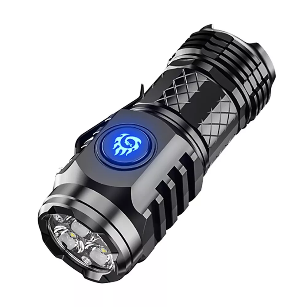 Features: SUPER BRIGHT LED: The Three-Eyed Monster Mini Flash Super Power Flashlight boasts three super bright LED bulbs that can illuminate even the darkest corners. FIVE LIGHT MODES: Switch between five different lighting modes - strong, medium, low, flash, SOS - according to your needs. COMPACT AND PORTABLE : Its pocket-sized design makes it easy to carry with you everywhere so you're never left in the dark. Feel free to put it in your pocket light and unburdened when you go on the go. DURABLE CONSTRUCTION: Built to withstand the rigors of outdoor adventures, this flashlight is waterproof and shockproof. Afraid of bumps and knocks, resistant to drops and abrasions, which improves the life of the flashlight. LONG BATTERY ENDURANCE : Thanks to efficient power management, this flashlight offers extended battery life, so it's ready when you are. The extra large battery capacity keeps the flashlight fully charged and illuminates you continuously. FLASHING DAZZLE DEFENSE: People's prevention should not be without, travel and women's night travel reserve, burst flash instant blindness in the dark gives a critical hit! TYPE-C CONVENIENCE: Type-C fast charging interface, safe voltage continuous supply, built-in smart chip, battery protection, both fast charging and battery life. Specifications: Material: ABS Battery Capacity: High Capacity Lithium Ion Power Source: Rechargeable Light Source: LED Suitable Environment: hiking, camping, emergency light, teaching, searching, daily carry, night riding, cave exploration, night fishing, testing light, patrol, other Maximum Range: 100-200 meters Size: As Shown Package Includes: 1 x Mini Flashlight 1 x USB Cable Note: 1.Please allow slight dimens error due to manual measurement.Thank you for your understanding! 2.Due to different monitors and different lighting, the picture may not show the actual color of the item. Thank you for your understanding.