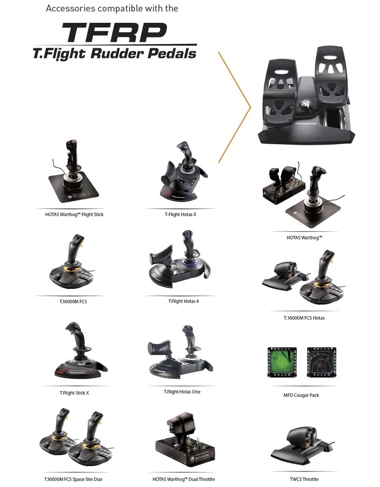 The TFRP adds an innovative new product to ’s wide range of joysticks and other related flight-themed controllers Long range of travel on rudder axis for precise maneuvers. Self-centering rudder axis: The perfect balance between smoothness and resistance for re-centering, for the most accurate maneuvers 4 slide rails crafted of industrial-grade aluminum for perfectly smooth sliding motion. First rudder ever to feature the S.M.A.R.T (Sliding Motion Advanced Rail Track) slide rails system!