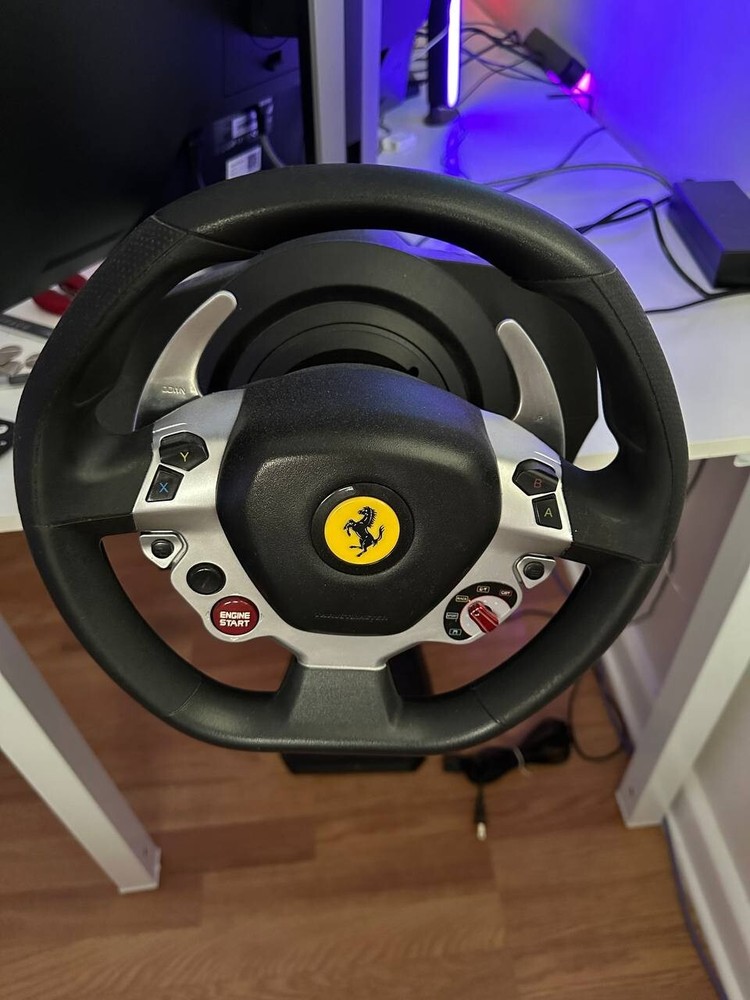 Fully working Thrustmaster TX Ferrari 458 (T300RS Analogue) Italia Edition steering wheel with pedals. Strong FFB and 900 degrees of rotation. Ideal for racing simulators.