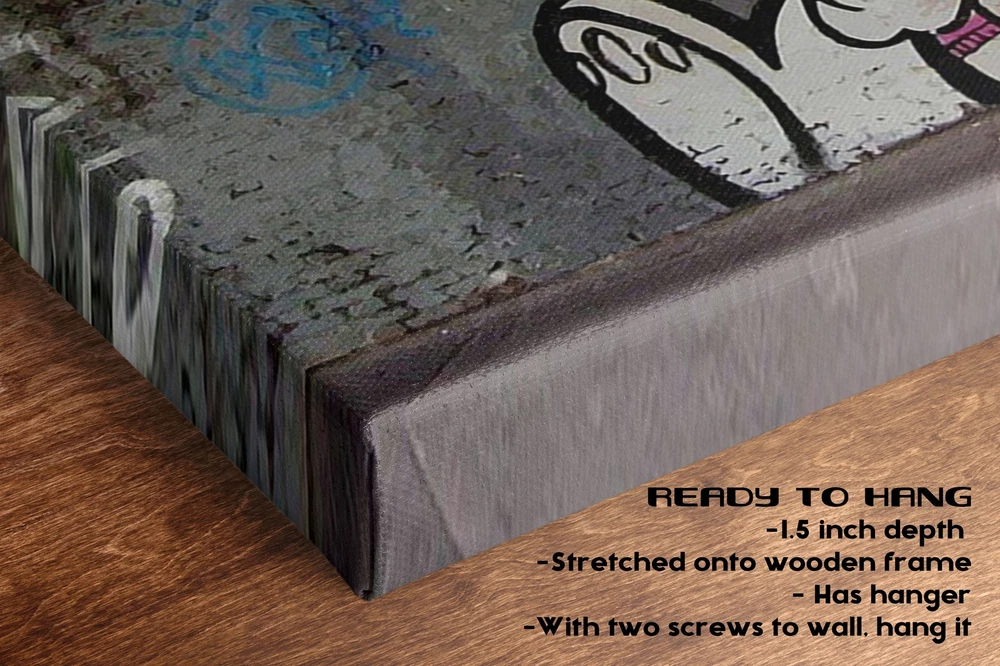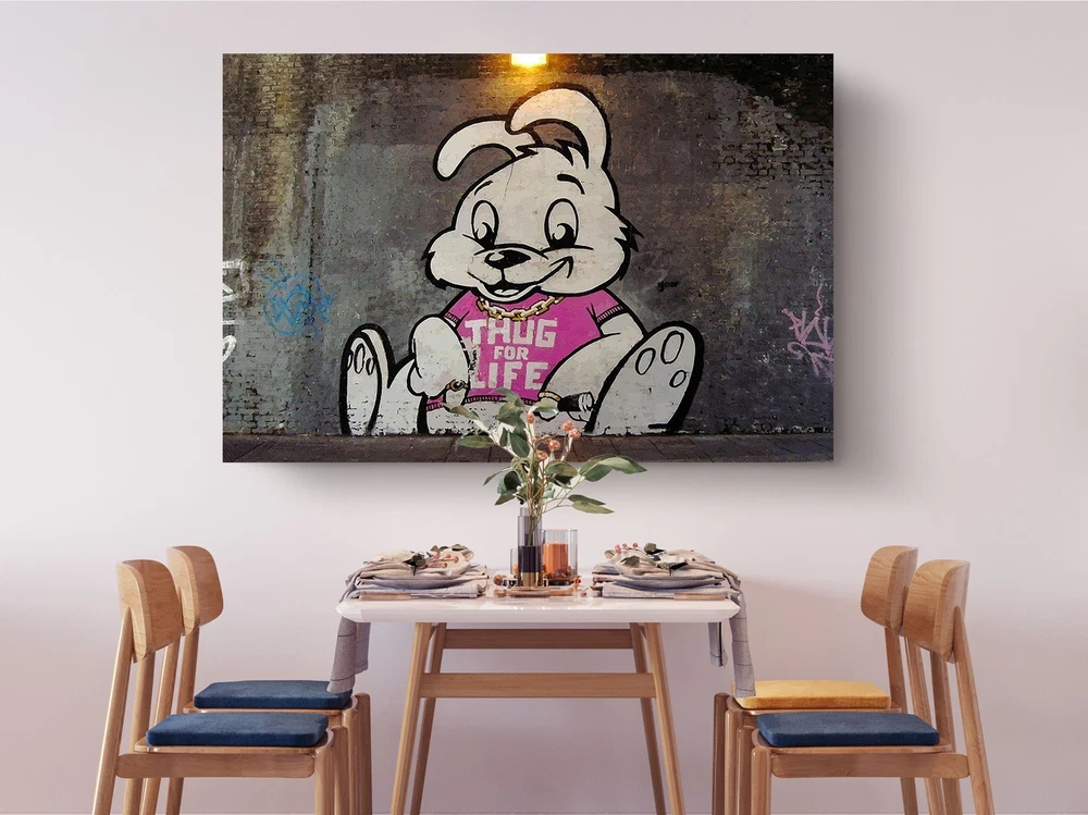 Thug Bunny Banksy Inspired Canvas Print, Ready to Hang, Home Décor