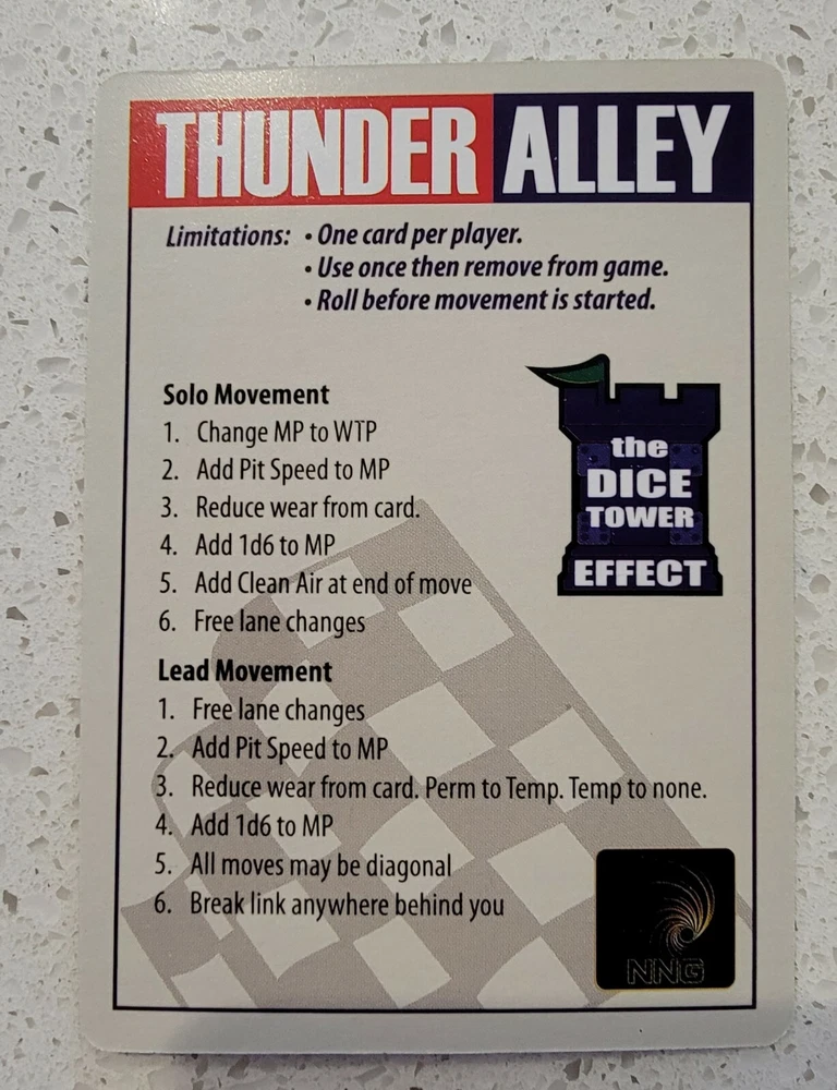 Thunder Alley.Promo Card.The Dice Tower Effect