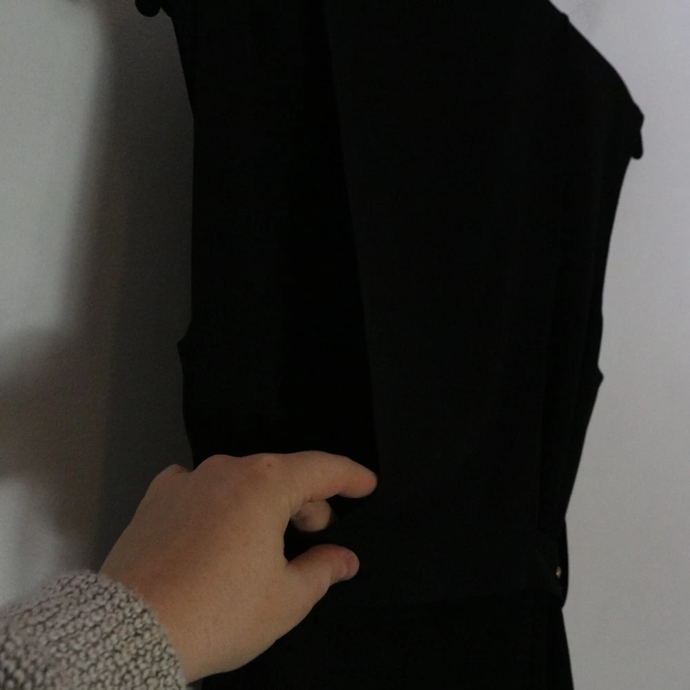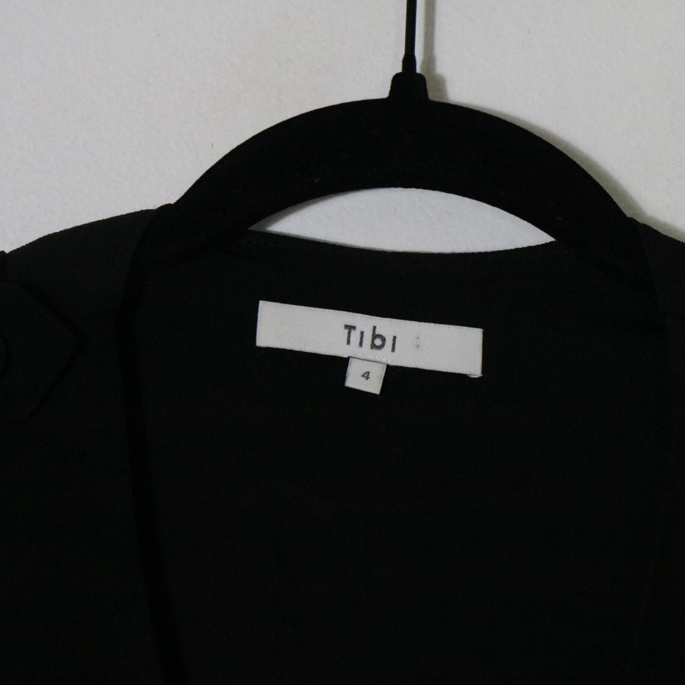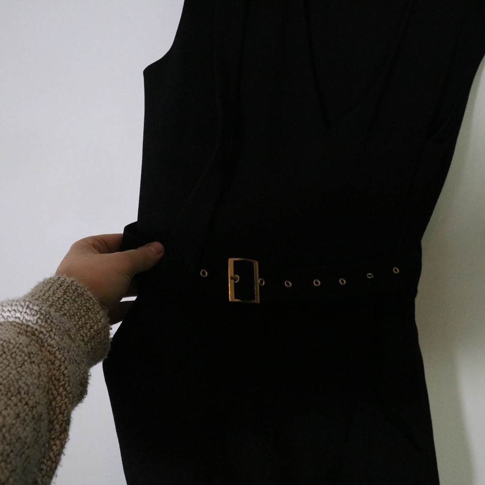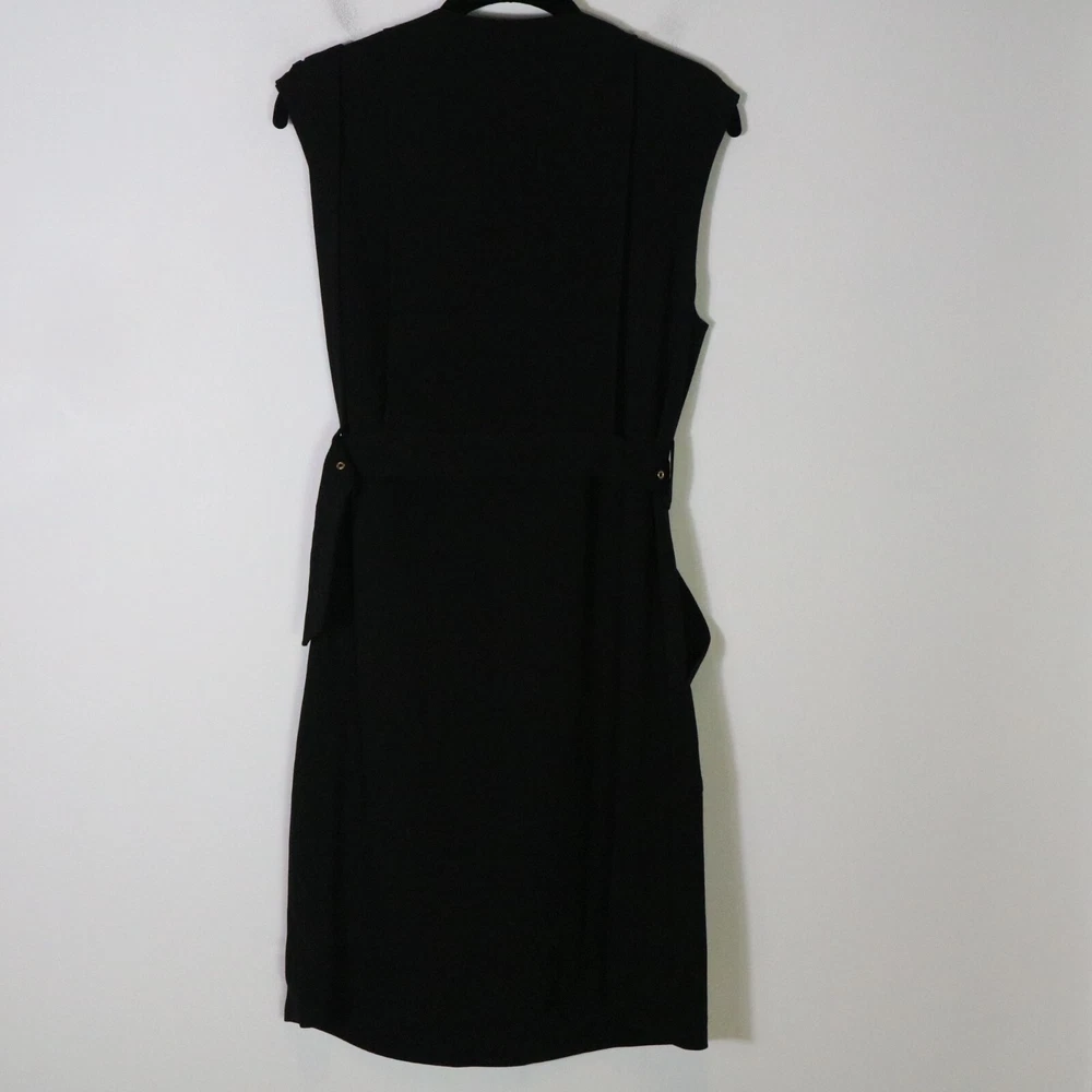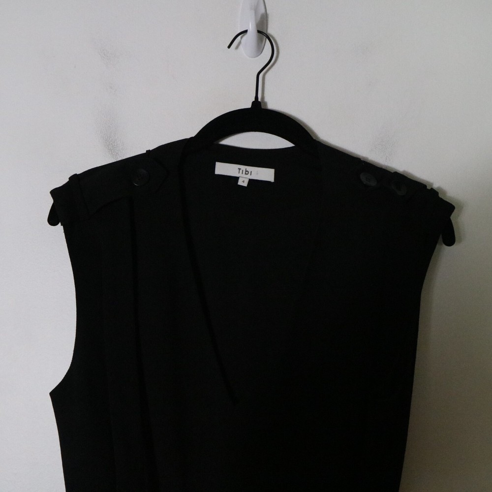 Tibi Belted Black Mini Dress Womens 4 V Neck Gold Grommet Neutral Dark Grunge bust 18 inches length 38 inches
