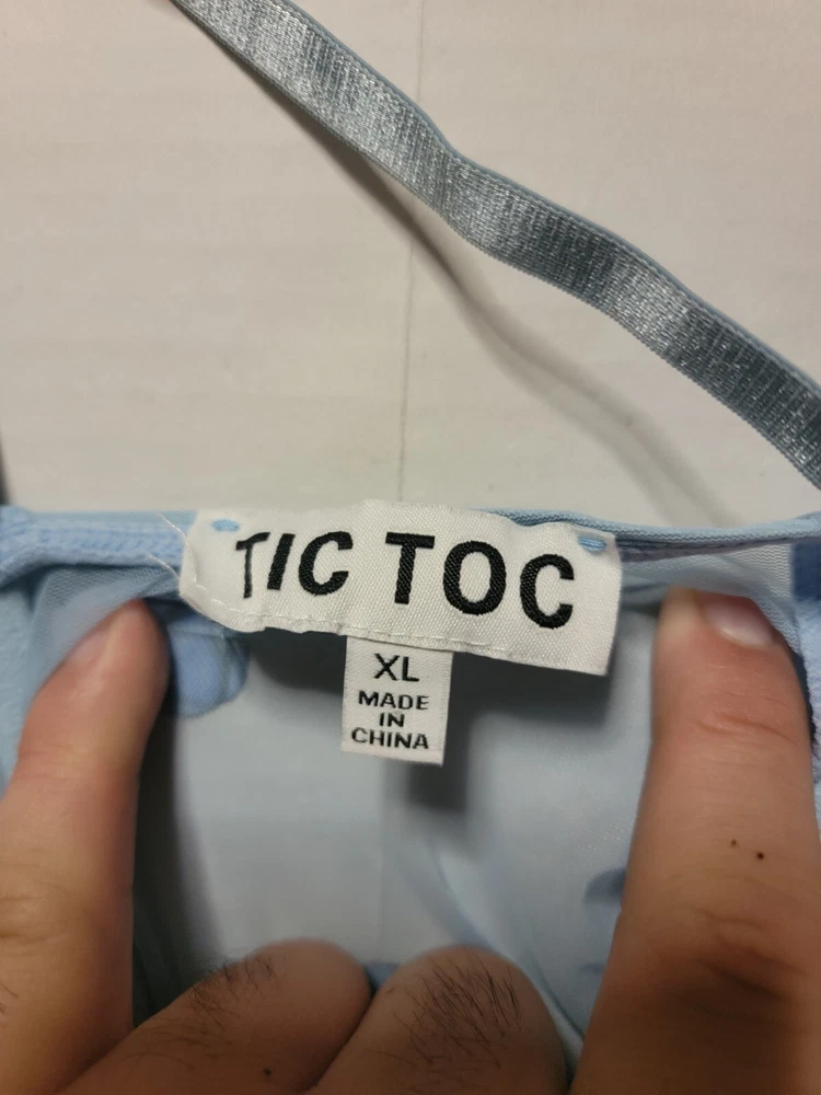 This Tic Toc bralette is a stylish addition to any lingerie collection. The powder blue color and butterfly theme make it a unique piece that is sure to catch the eye. The bralette features a hook and loop closure and adjustable bra straps for a comfortable and secure fit. Made from a combination of nylon and spandex, this bralette is both sheer and comfortable. The strap accents and back closure add an extra touch of elegance to the design. Available in size XL, this bralette is perfect for any woman who wants to feel confident and comfortable in her undergarments.