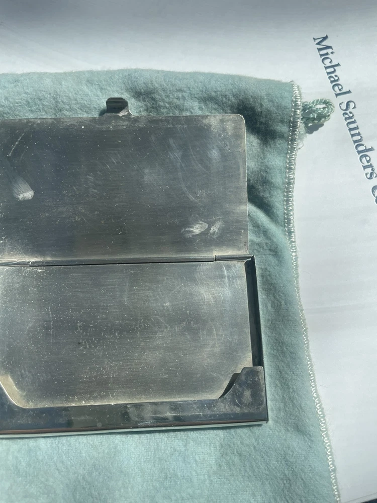 The Tiffany and Company Antique Business Card Holder is a stylish and sophisticated desk accessory designed to hold business cards in a professional manner. This business card holder is likely crafted with high-quality materials and features a timeless design that reflects the elegance and prestige of the Tiffany and Company brand. Perfect for adding a touch of luxury to any office or workspace, this antique business card holder is sure to make a statement and leave a lasting impression on clients and colleagues alike.