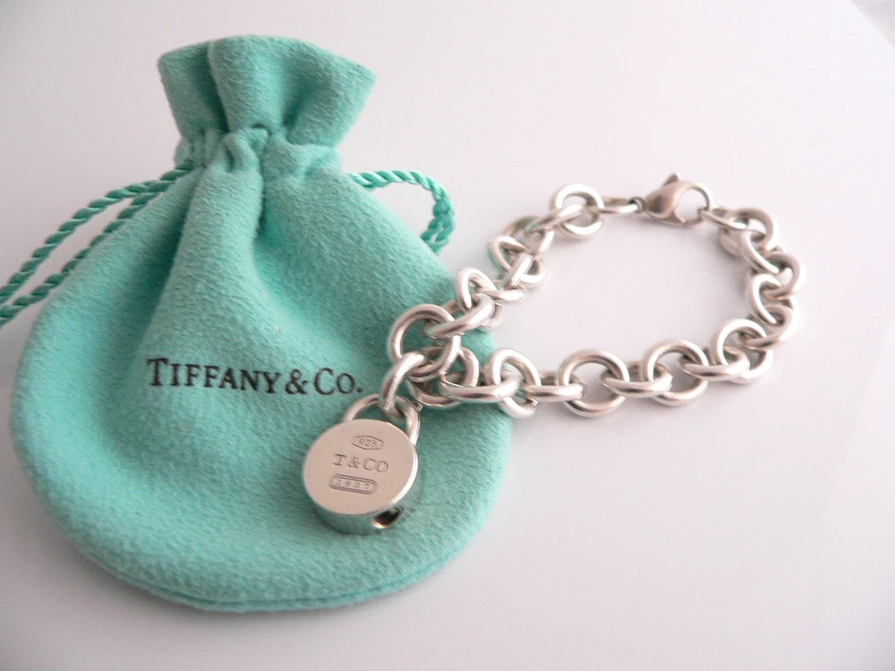 Offered for sale is a wonderful and very elegant Tiffany and Co. Sterling Silver 1837 Round Padlock Charm bracelet. The piece is made from substantial and bright Tiffany silver, and yet retains a very feminine feel to it. Attached to its very substantial Tiffany Silver charm bracelet is a fantastic and classic Tiffany 1837 Round Padlock charm. The padlock charm opens and closes and can thus be used on another necklace or charm bracelet - if you choose to do so. Super versatile piece! It is a classic Tiffany piece that will most certainly be a piece that you will be used over and over again, so it is great value for the money! It is a wonderful piece that fits a lifestyle on the go -- the bracelet can be worn to almost any occasion! It is versatile, elegant, and classic all rolled into one. Imagine the piece with your professional office attire ... Now imagine it with jeans or weekend wear ... Perfect! The bracelet is in good condition. As always, both the charm bracelet and padlock charm are fully hallmarked and guaranteed to be 100% authentic. Wonderful present for yourself or anyone you love! Will surely delight! It will come with its Tiffany pouch as shown! Perfect and ready for gifting! Particulars: Size & Measurements: The bracelet is approx. 7.25 inches from end to end. Metal & Hallmarks: Tiffany & Co. / 925 (on padlock charm) T & Co. / 925 (middle link of chain; clasp of charm) Solid 925 sterling silver Please check out my other unique and interesting Tiffany items on sale.