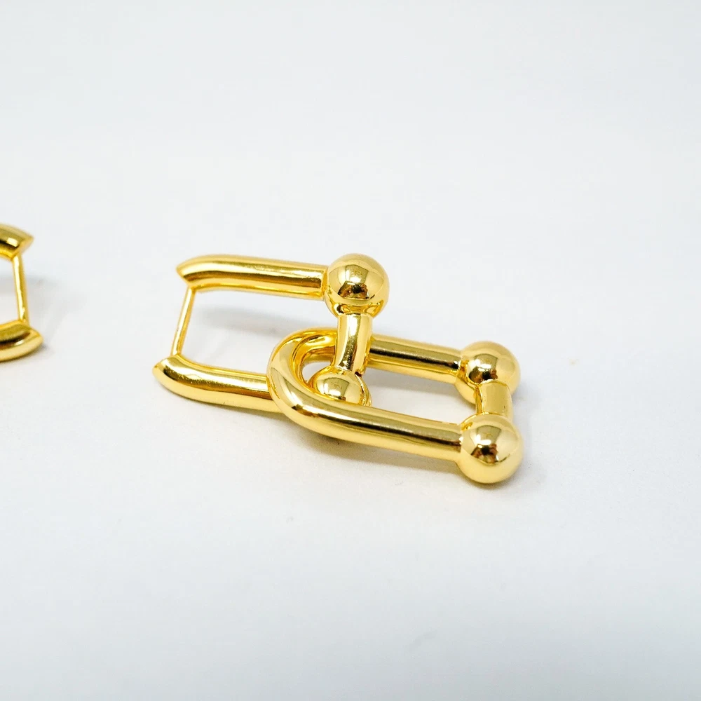 Tiffany & Co. 925 Gold Tone U Ball Hoops / Dangle Earrings With Gift Box Set