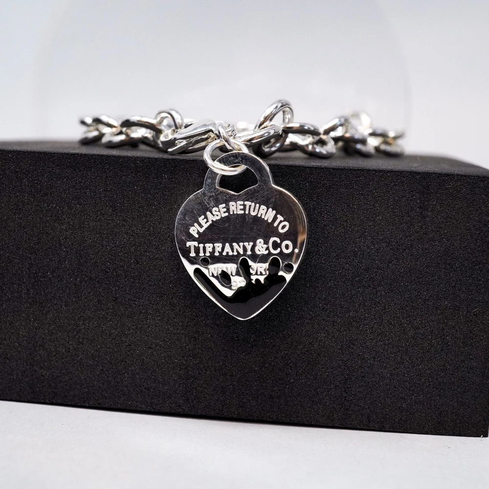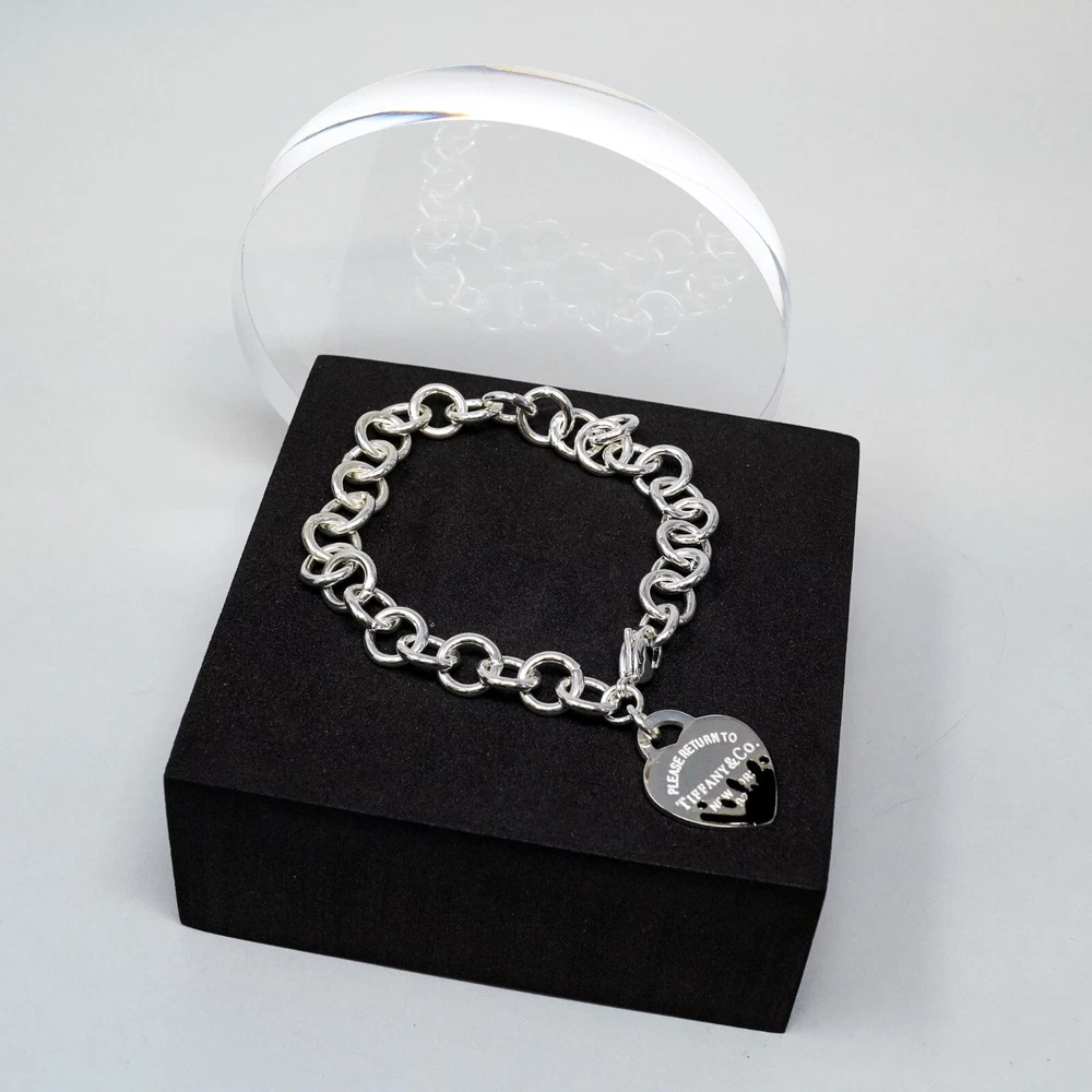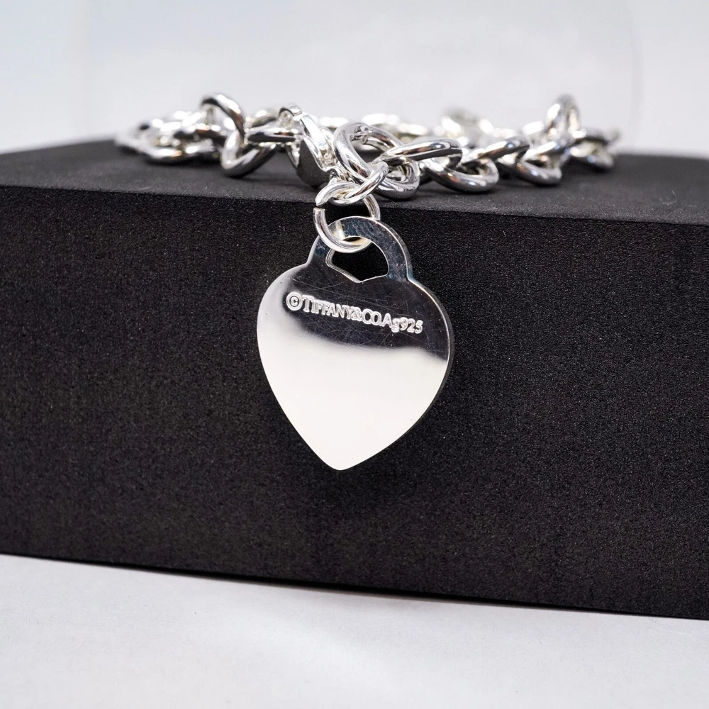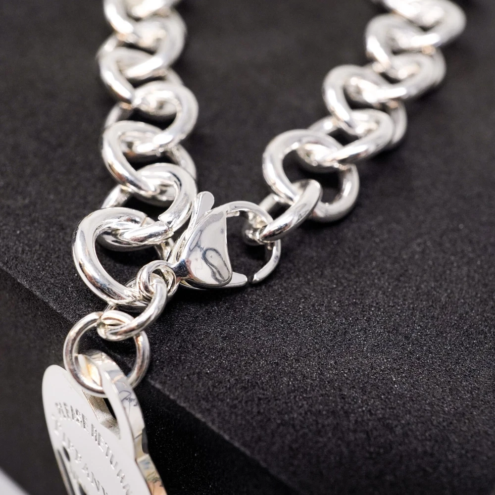 Tiffany & Co. 925 Silver Key Heart Tag Bracelet 20cm With Gift Box Set