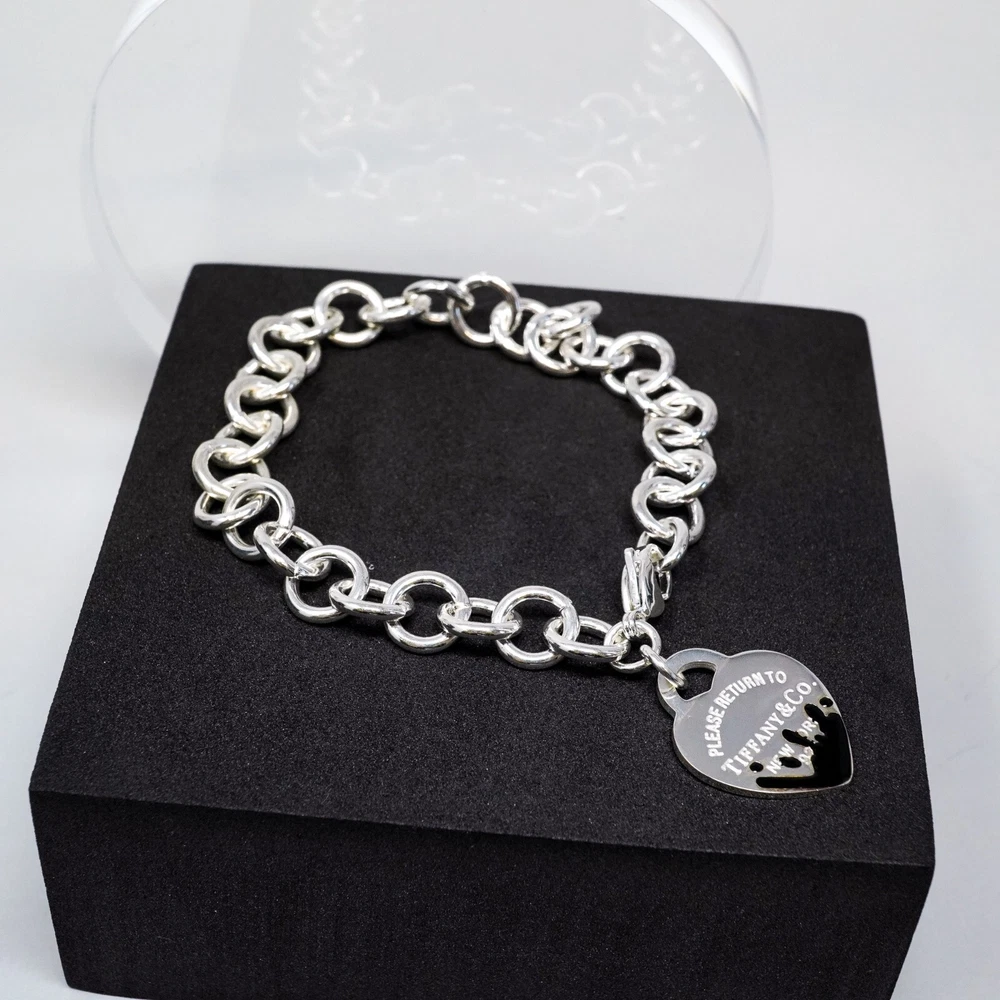 Tiffany & Co. 925 Silver, Black Splash Heart Tag Bracelet 20cm With Gift Box Set