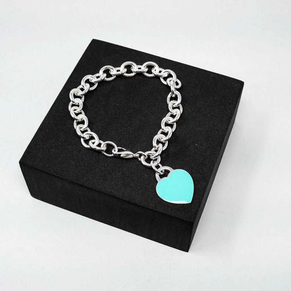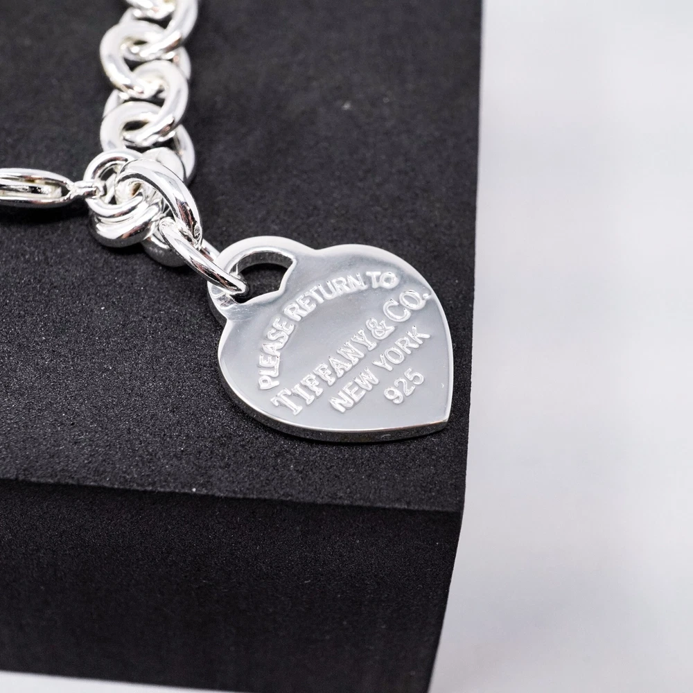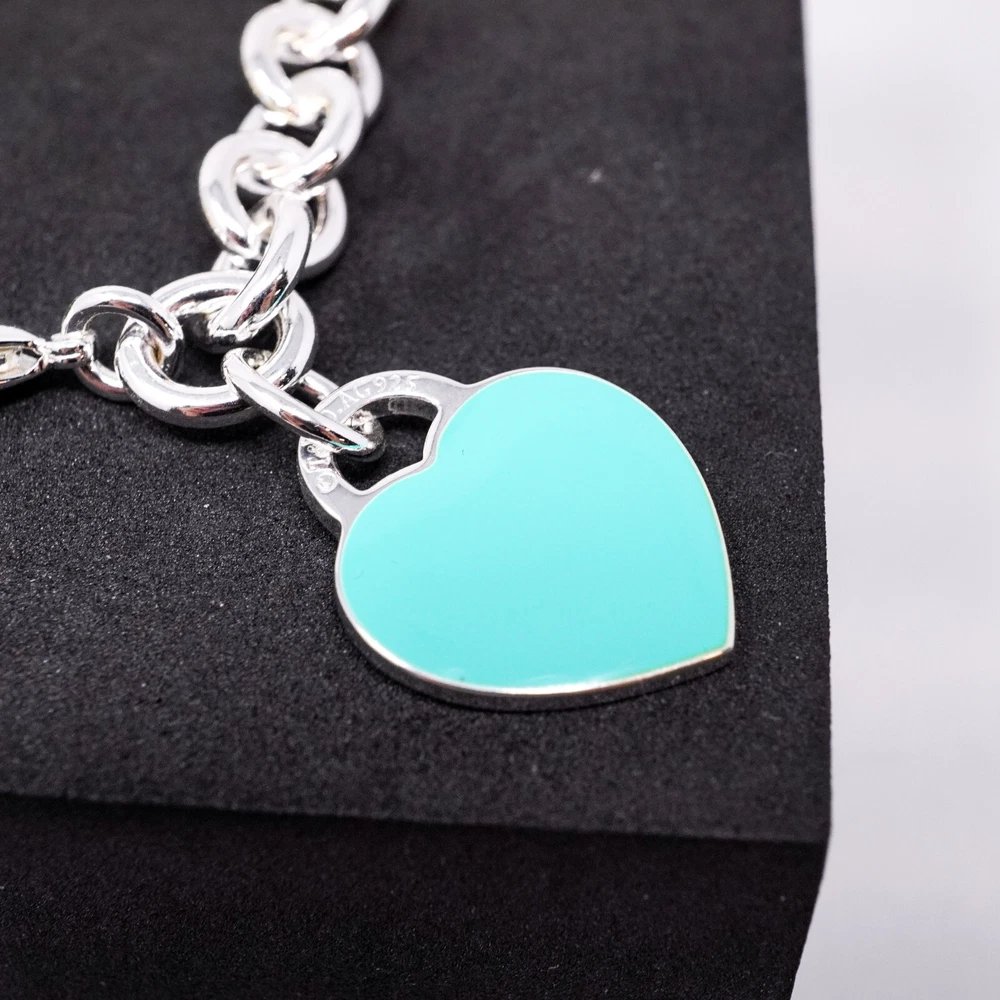 Tiffany & Co. 925 Silver, Blue Heart Tag Bracelet 20cm With Gift Box Set