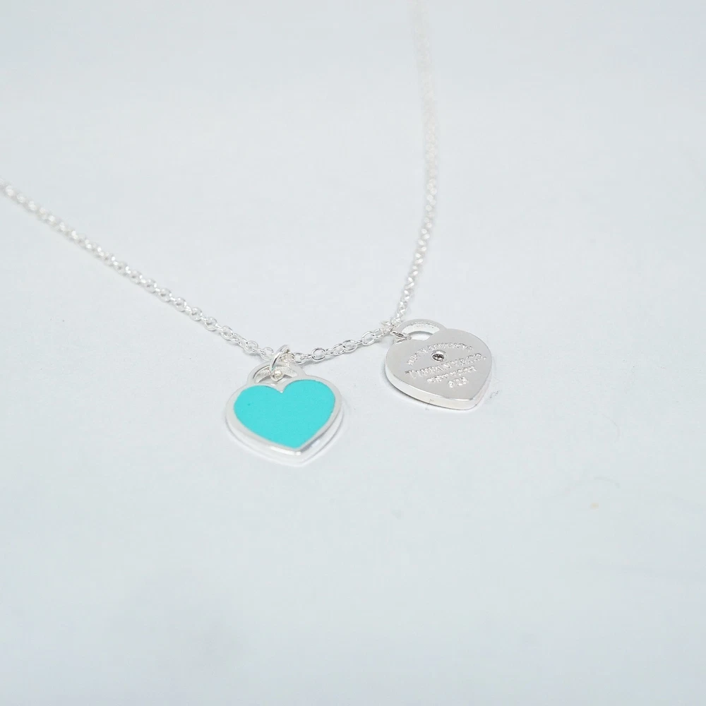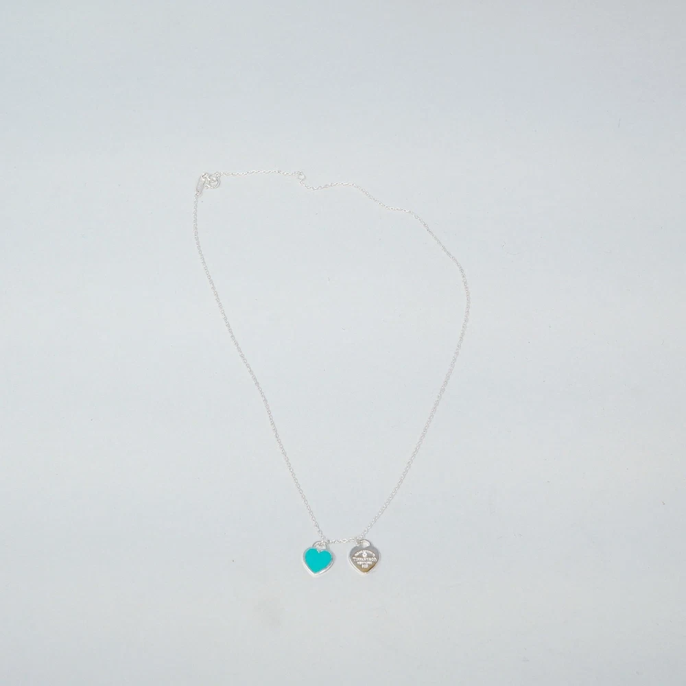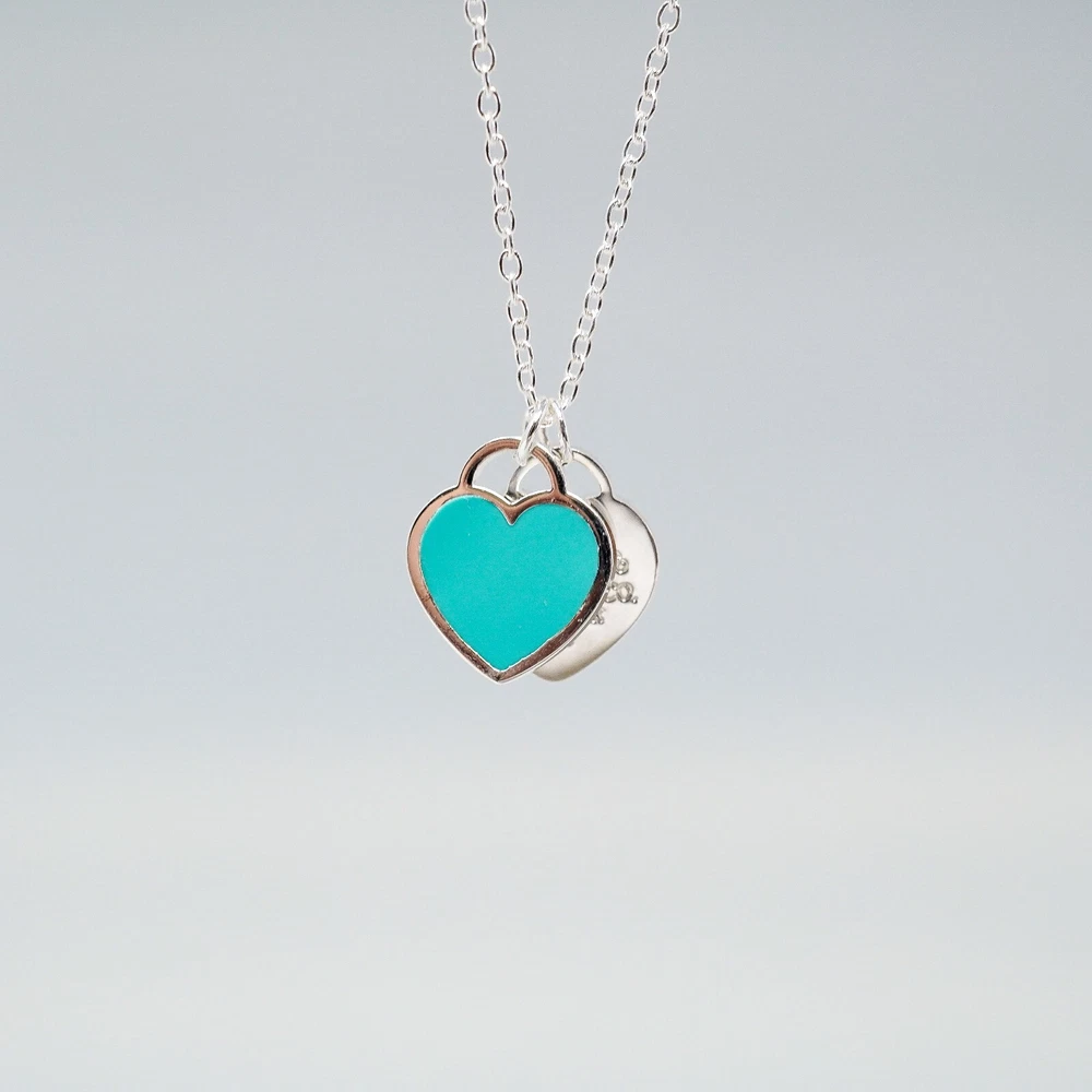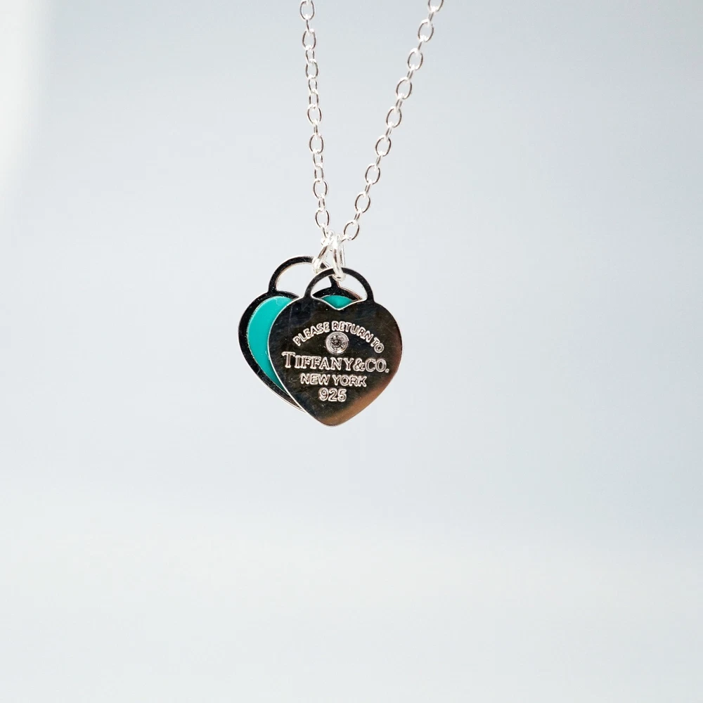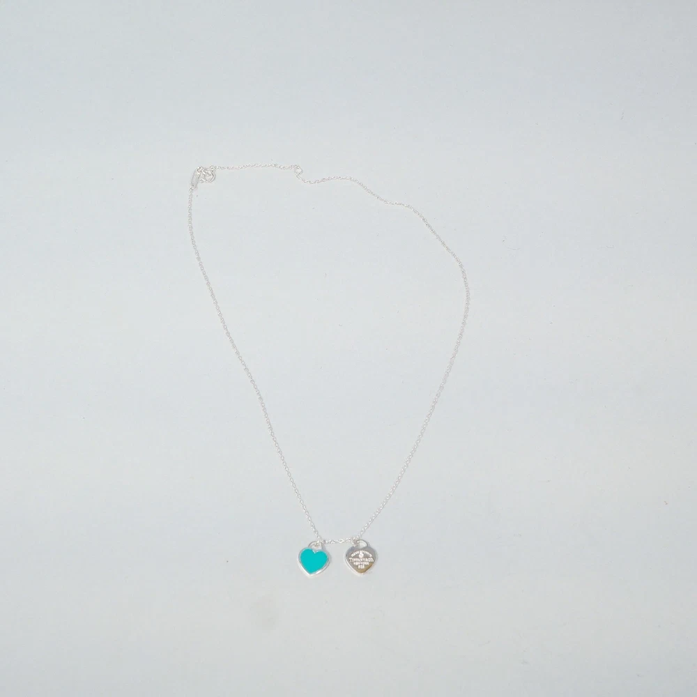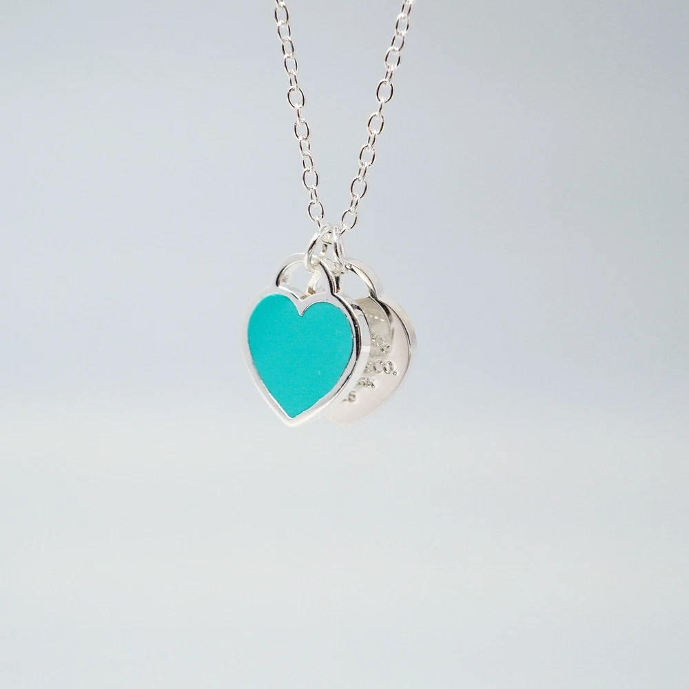 Tiffany & Co. 925 Silver Blue Mini Double Hearts Pendant Necklace 48cm Gift Box
