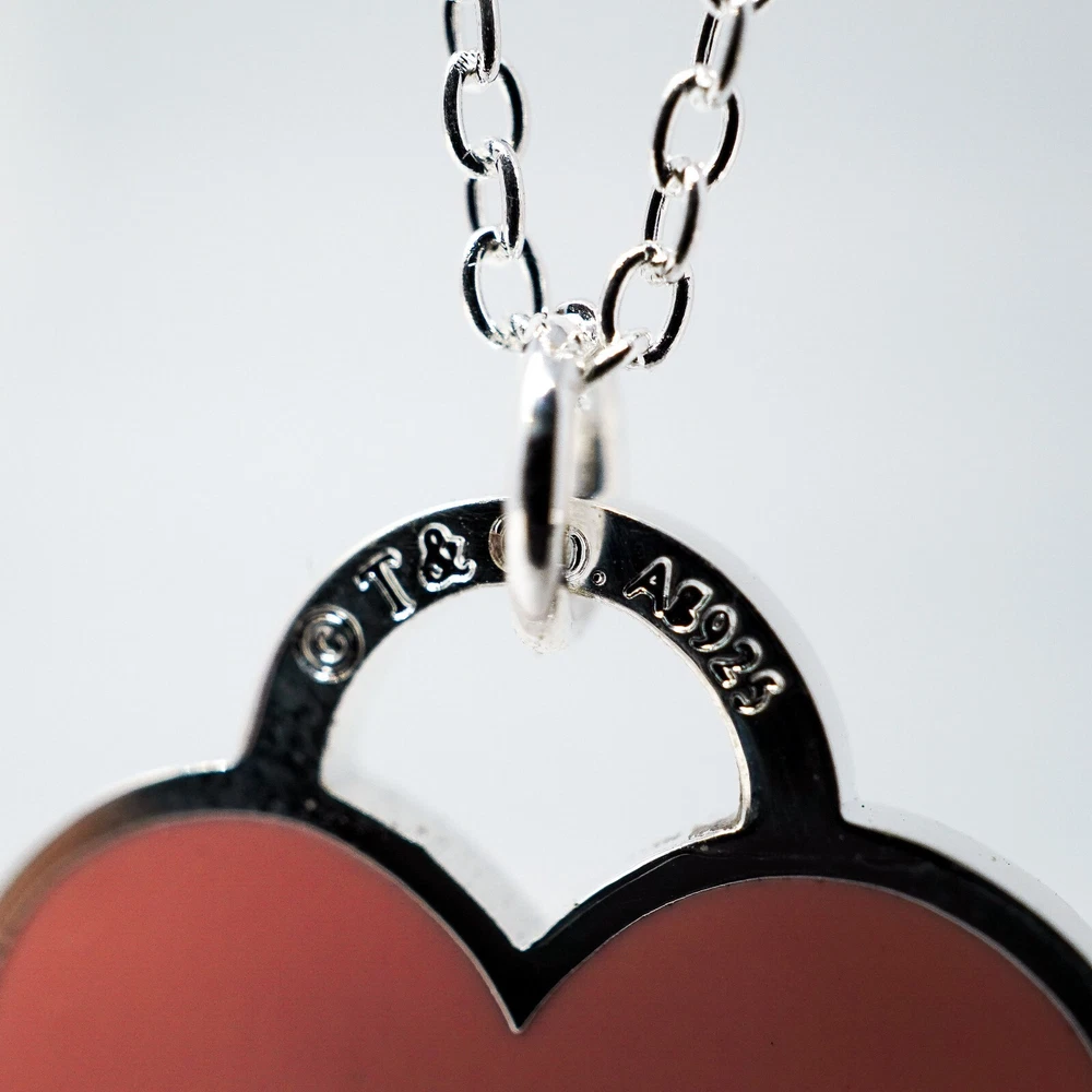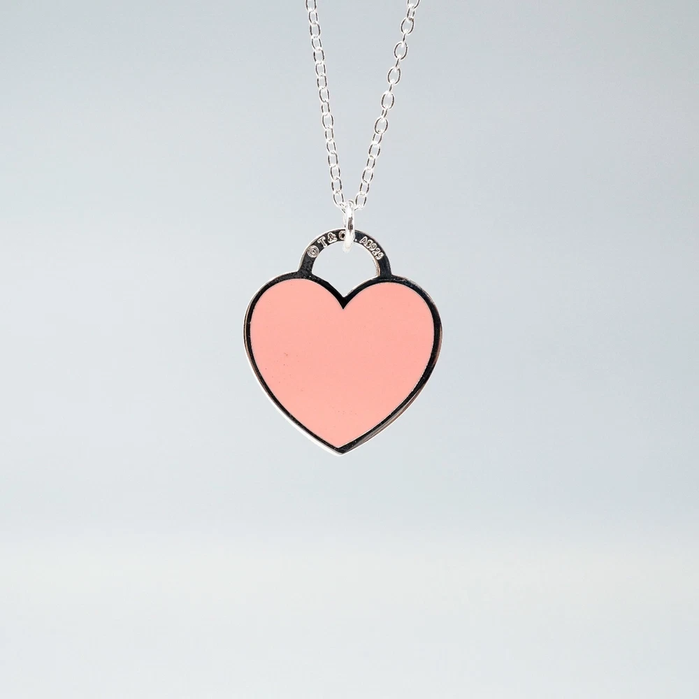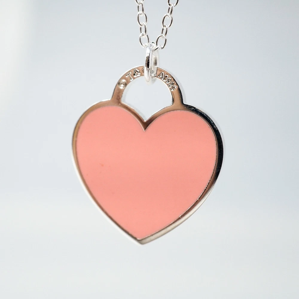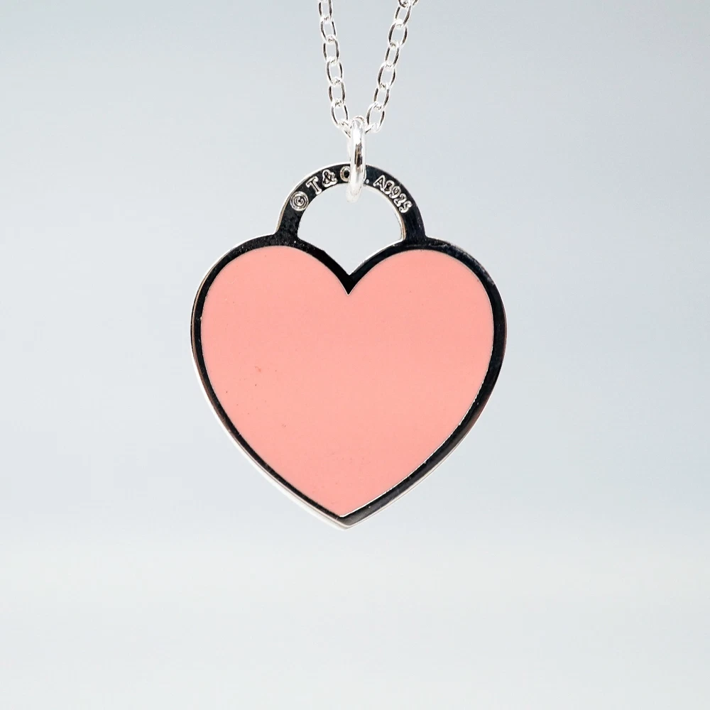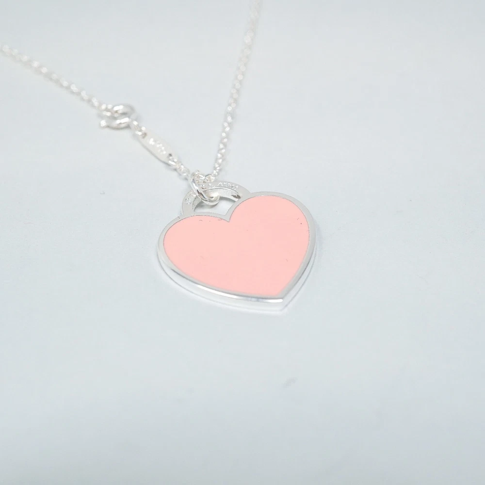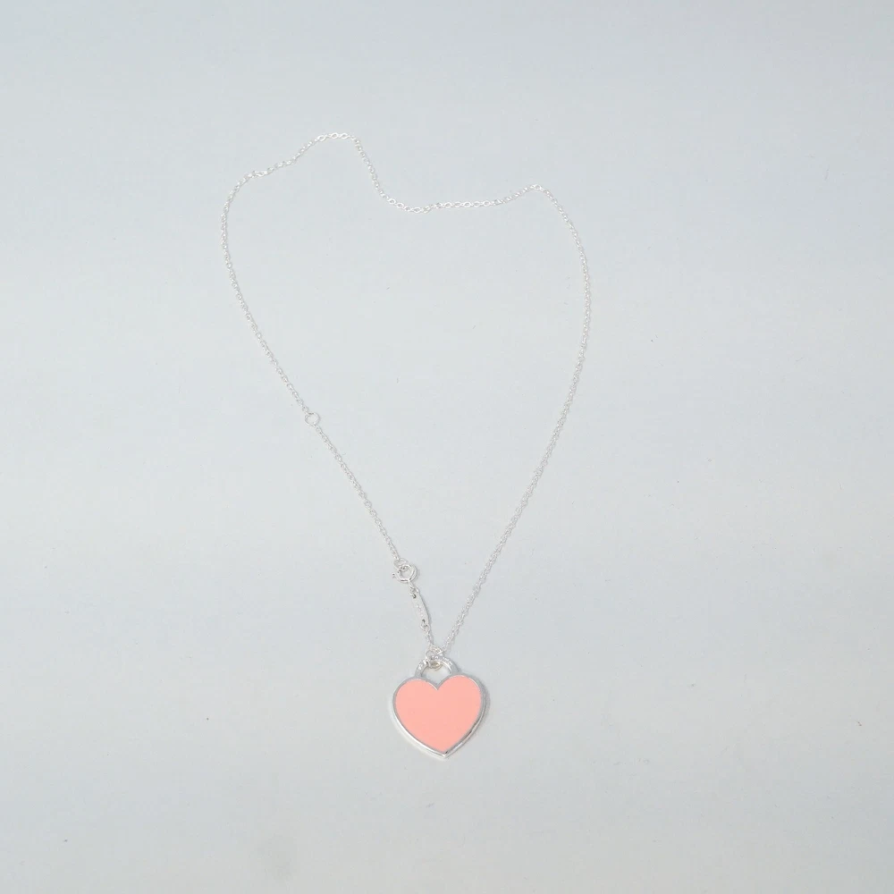 Tiffany & Co. 925 Silver Pink Heart Pendant Necklace 48cm With Gift Box Set