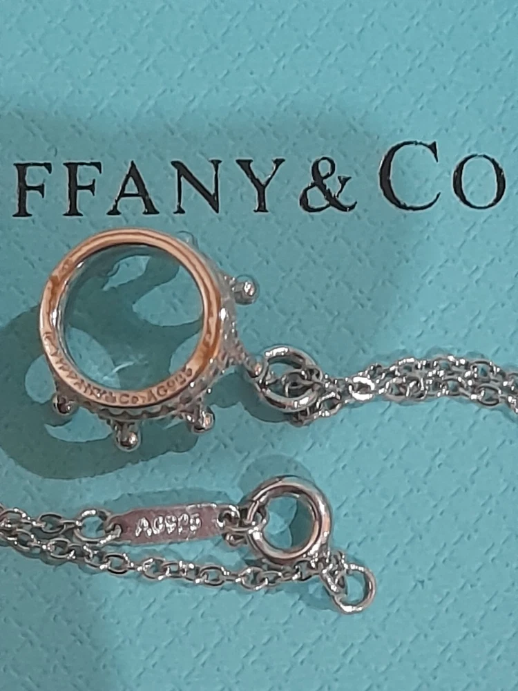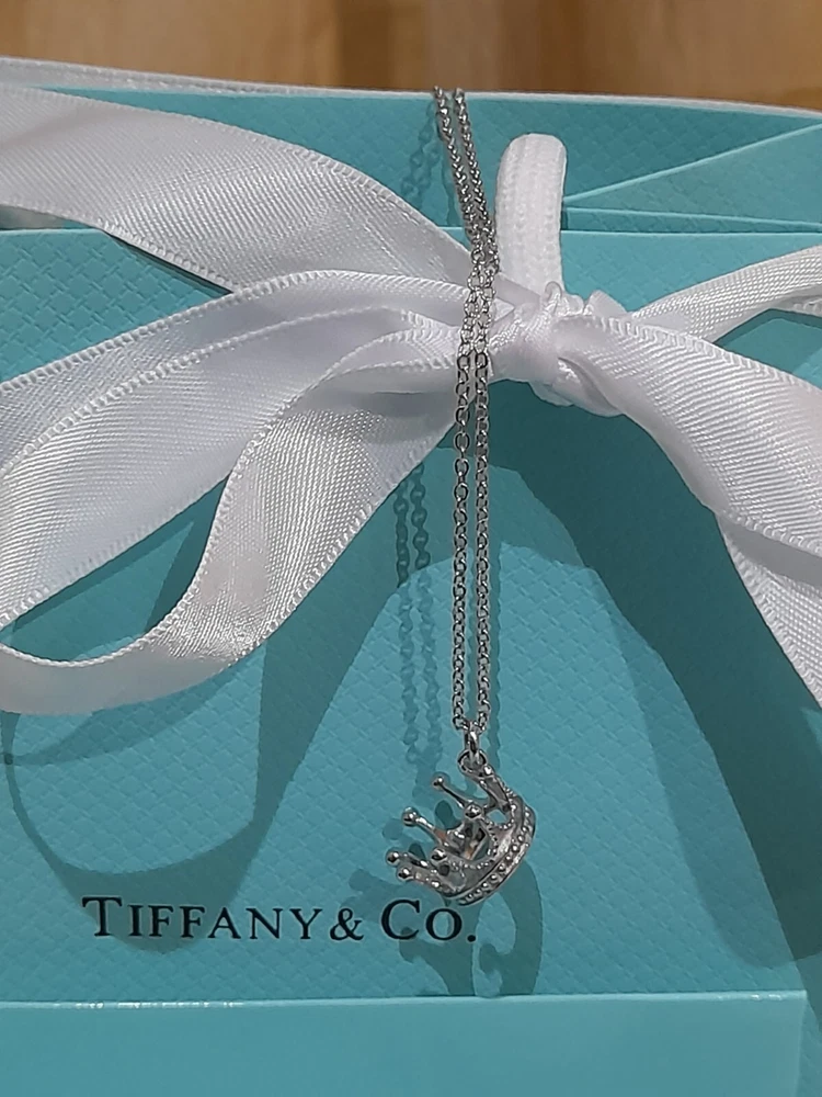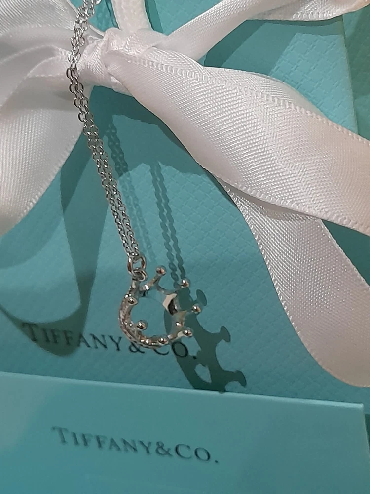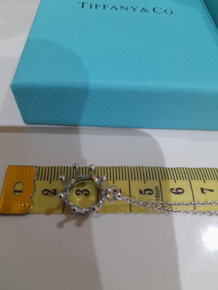 PLEASE NOTE: I will package and post this or any other Tiffany&Co. item listed for sale by Royal Mail special delivery 1-2 working days after purchase, so it will arrive on the following working day after postage around 1pm (UK) ππ Add a touch of regal charm to your jewellery collection with this stunning authentic Tiffany & Co. 925 Sterling Silver Crown Charm Pendant Necklace. This 20" necklace features an engraved Tiffany & Co. 925 Crown pendant, which is beautifully crafted with a spring ring closure. The oval link chain adds to the overall elegance of this piece, making it the perfect accessory for any special occasion, be it for an Anniversary, Birthday, Valentine's Day or Christmas π The necklace is hallmarked and signed by Tiffany & Co., ensuring its authenticity. With a total weight of 3.44 grams, this necklace is a statement piece that is sure to turn heads. The necklace is perfect for those who love beauty, art, love, and magic. It is a must-have for any jewellery enthusiast. Perfect for gifting or for treating yourself! ππβ€οΈπ Please note that this sale includes the Tiffany&Co. dust pouch, a box, a white ribbon, a sterling silver polishing cloth, and a gift bag as photographed π PLEASE NOTE : Some of this packaging has been added to the original packaging to make this better for gifting. Hence, it is described as new without tags according to Ebay's descriptors π The sale also includes free Royal Mail special delivery. Once purchased, this item will be carefully packaged and posted to you quickly, 1 -2 working days, via Royal Mail special delivery π Please see all the photographs of the item for sale as these form a part of this description and demonstrate all the details of the necklace, including it's excellent condition, measurements, and the weight of the item. This pendant necklace weighs 3.44 grams. The necklace is 20" long. Thank you for looking π Please see my other listings for sale as these include many other stunning authentic Tiffany&Co. items for sale, both new and preloved rare retired items π