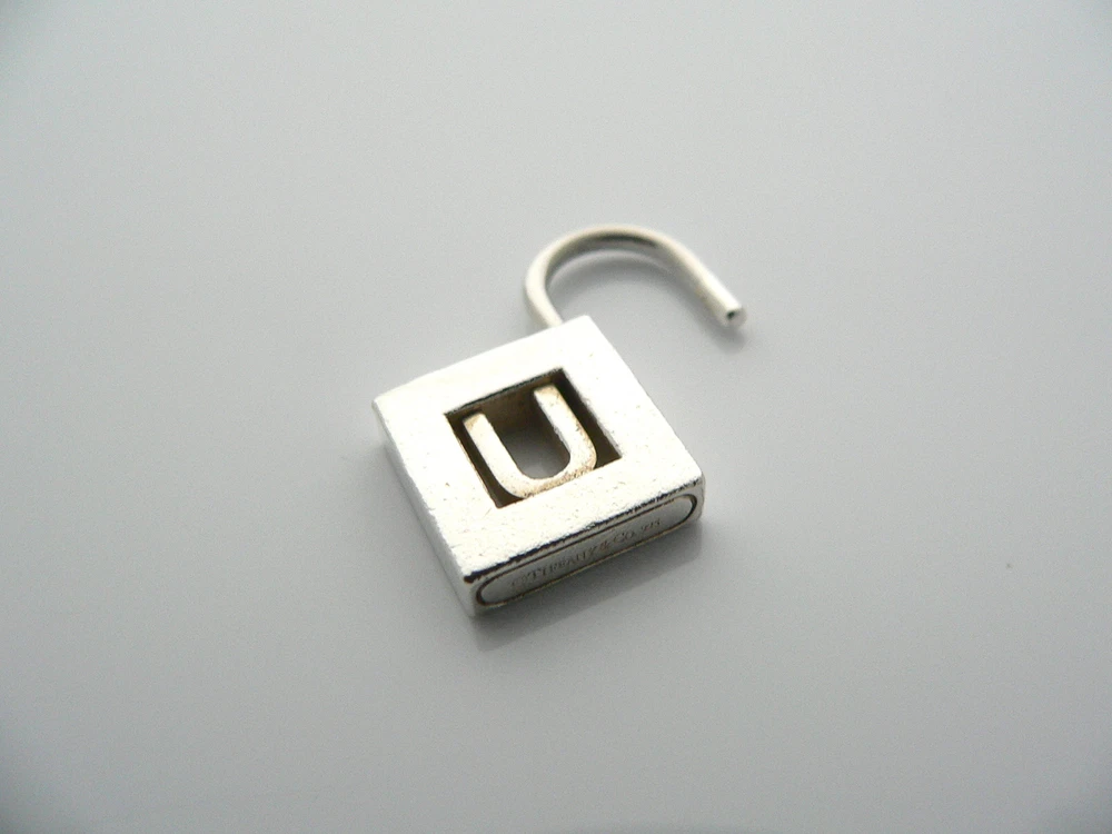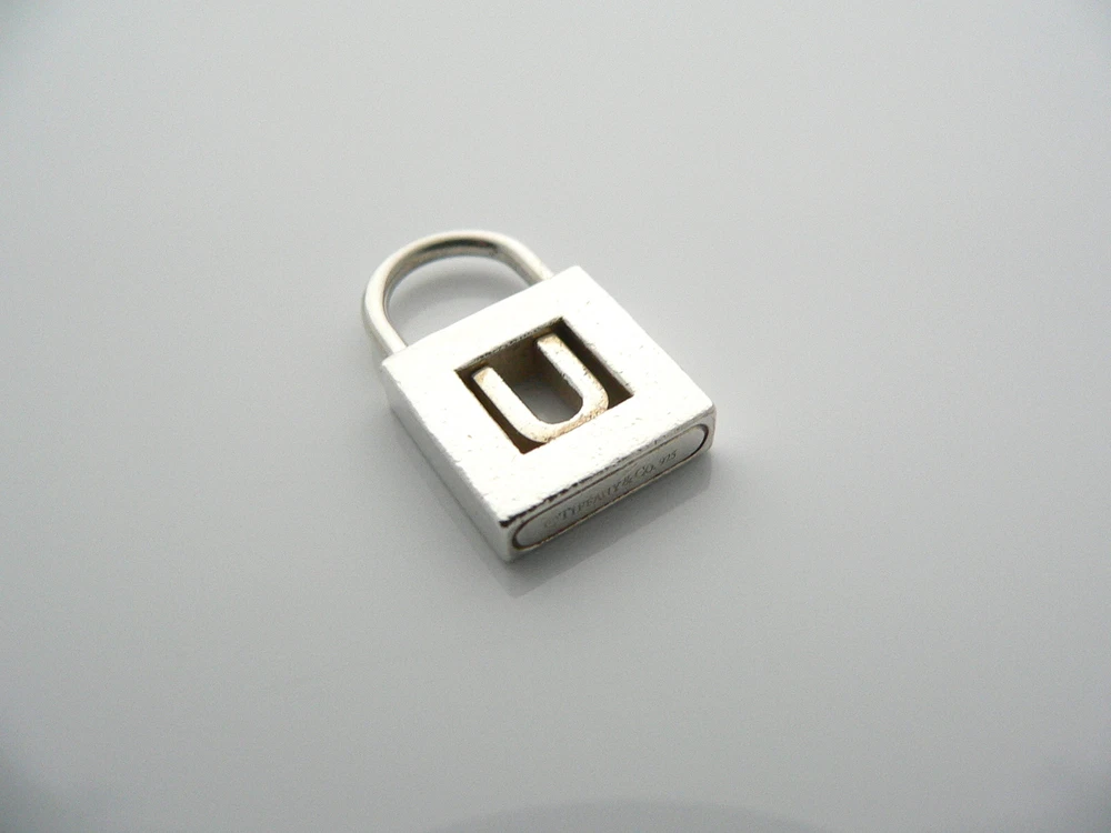 Does the letter "U" have a special significance for you? You're in luck! You just found a wonderful Tiffany piece for yourself or that special person! Offered for sale is a wonderful Tiffany & Co. Sterling Silver Alphabet "U" padlock pendant / charm. The padlock opens and closes. Super versatile charm that you can add on to any necklace or bracelet ... Perfect item to show off your "Tiffany" style! The piece is simple, elegant, and classic all rolled into one item. Please note - it is pre-owned and has scratches. It is a wonderful Tiffany piece to start or add to your collection. As always, the item is hallmarked and guaranteed to be 100% authentic. Particulars: The charm is a tad less than 1 inch long (including the U shape). Metal & Hallmarks: Tiffany & Co. / 925 Solid 925 sterling silver Please check out my other unique and interesting Tiffany items on sale.