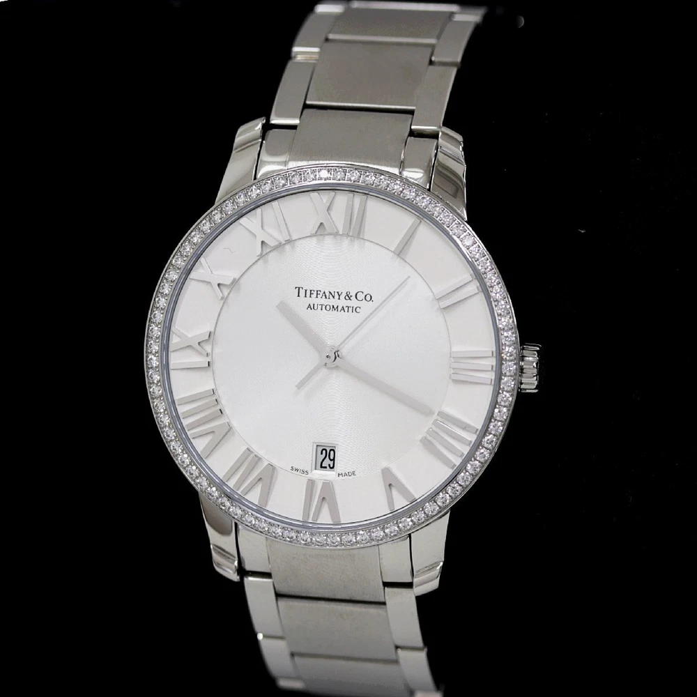 Tiffany Co. Atlas Dome Z1801.68.10B21A00A Watch Diamond Bezel See Through Ba