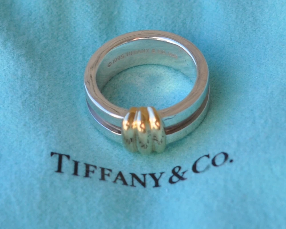 Tiffany & Co Atlas Groove Ring. Sterling Silver 925 & 18k gold . Size 5 US. No box or pouch. All Our Tiffany & Co. Items are Authentic.