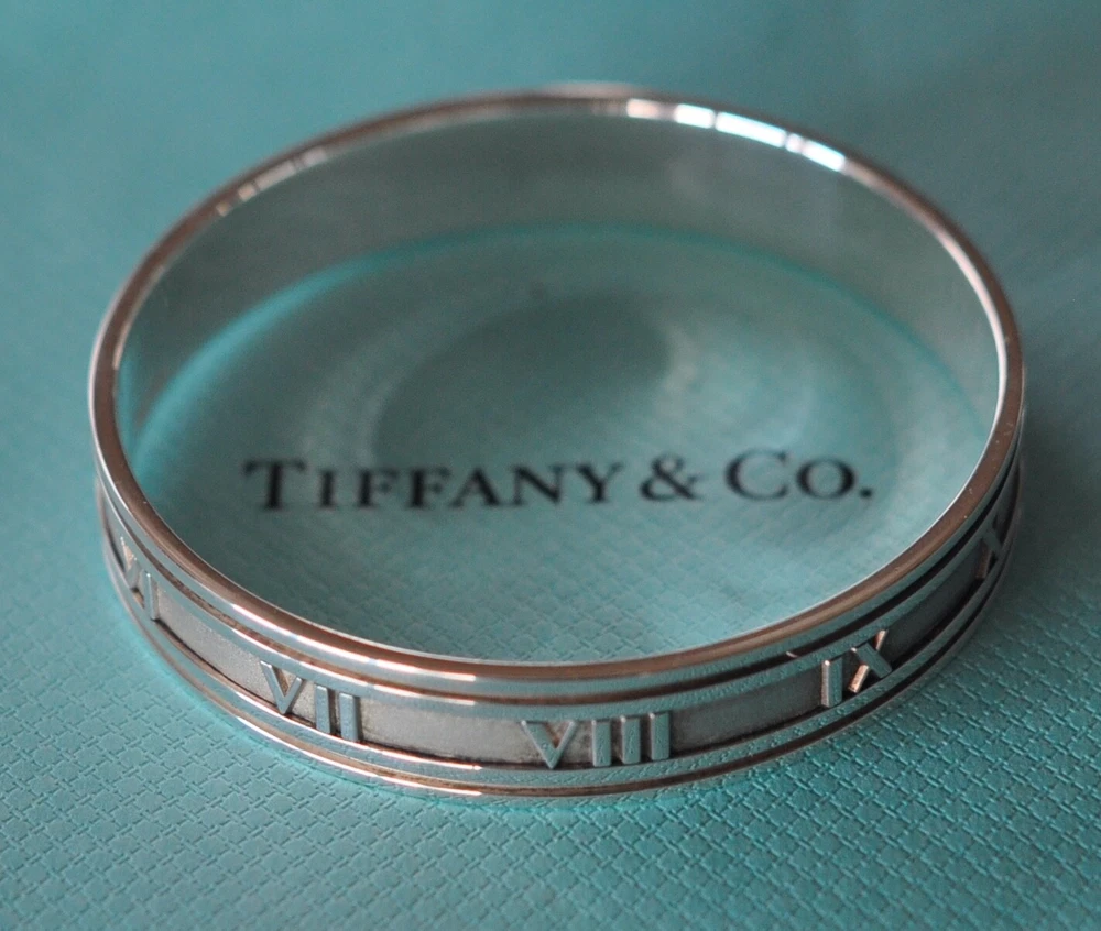 Tiffany & Co. Roman Numeral Atlas Bangle Bracelet 1995. Measures approx. 2 5/8" across the inside. Sterling Silver 925. Made in Italy. No box or pouch. All Our Tiffany & Co. Items are Authentic.