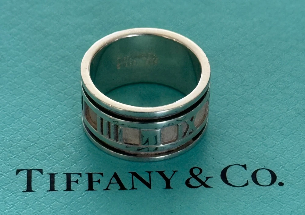 Tiffany & Co Wide Atlas Roman Numeral Ring. Sterling Silver 925. Size 8 US. No box or pouch. All Our Tiffany & Co. Items are Authentic.