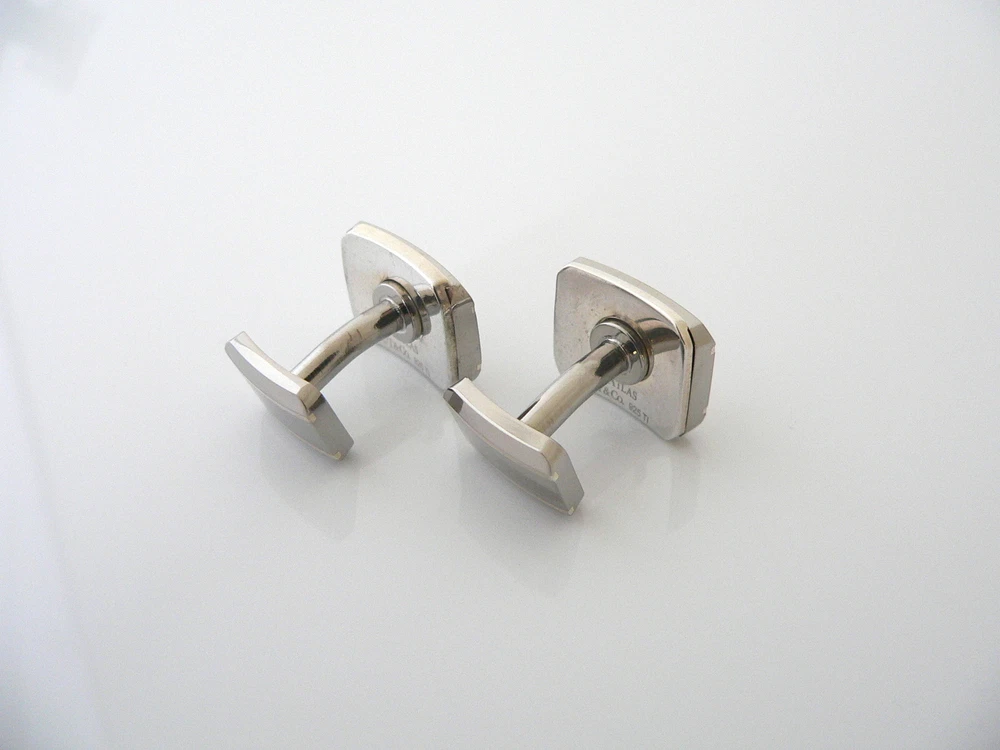 Overview: Offered for sale is a pair of very rare, elegant and versatile Tiffany and Co. Sterling Silver & Titanium Atlas Cuff Links. The pair will certainly be something that will be used often. Beautiful piece of "jewelry" that every man or woman can appreciate! Perfect surprise for that someone special! The links are fully hallmarked and guaranteed to be 100% authentic. Wonderful present for yourself or anyone you love! Will surely delight! Particulars: Metal & Hallmarks: Atlas / T & Co. / 925 / Ti (Titanium) Solid 925 sterling silver Please check out my other unique and interesting Tiffany items on sale.
