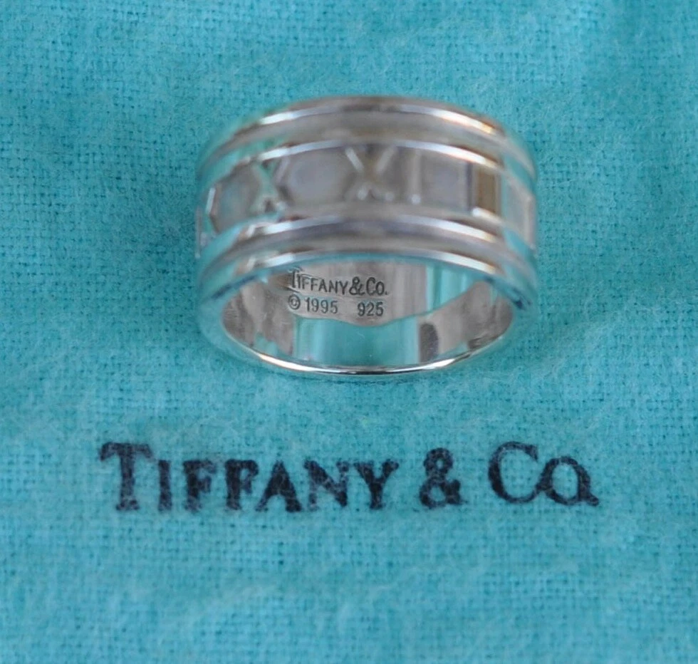 Tiffany & Co Wide Atlas Roman Numeral Ring. Sterling Silver 925. Size 9 1/4 US. No box or pouch. All Our Tiffany & Co. Items are Authentic.
