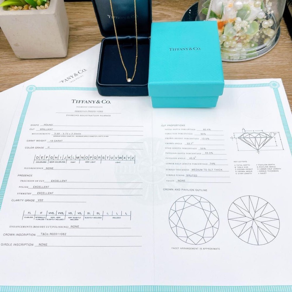 $ 284.12TIFFANY Co. Tiffany Diamond By the Yard Diamond Pendant Necklace 0.05 Carat
