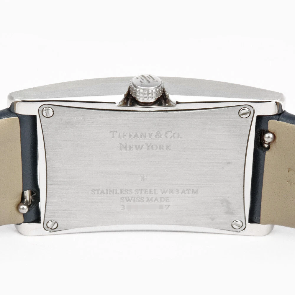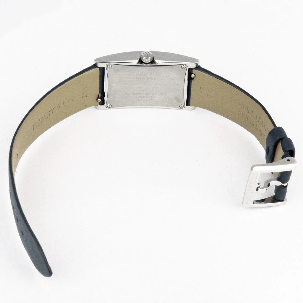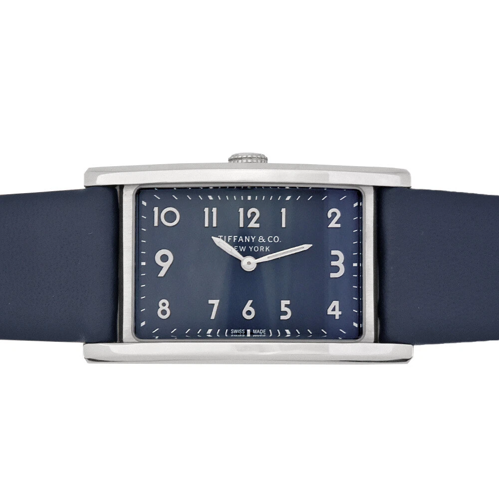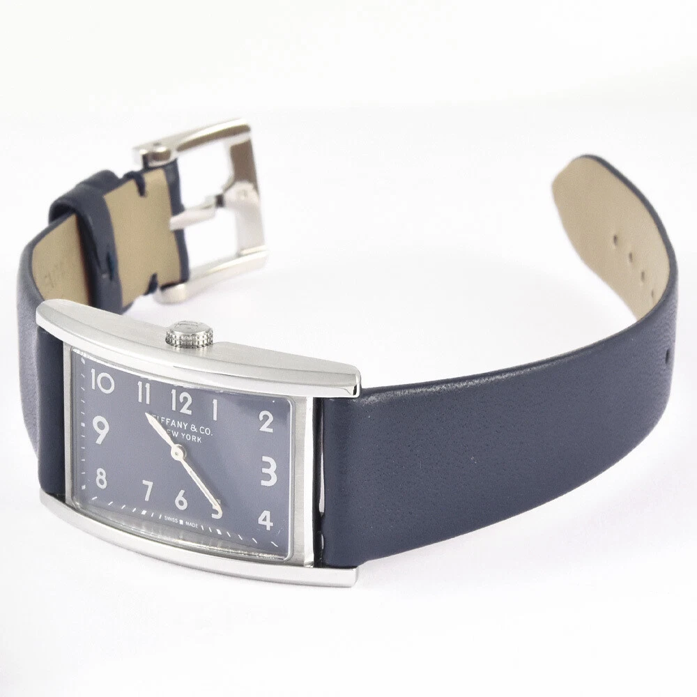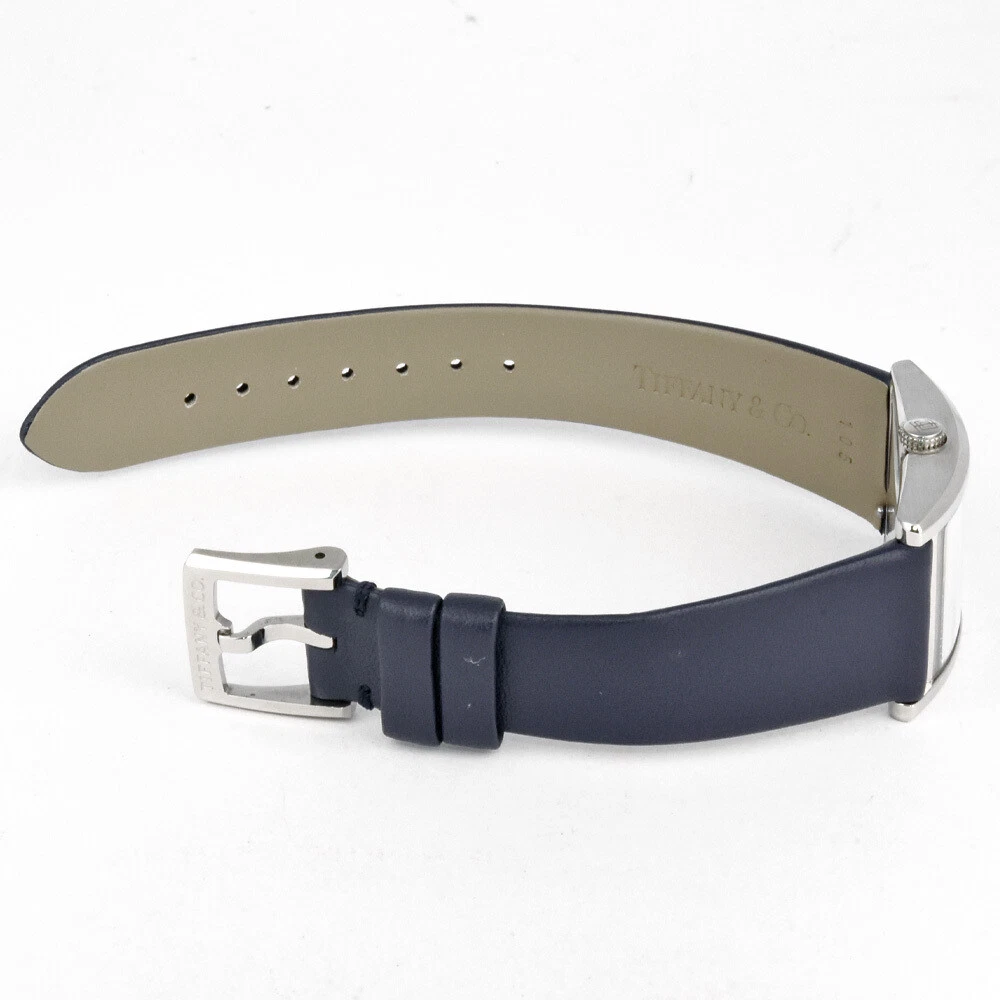 Tiffany Co. East West Mini 2 Hand Watch Quartz Navy Dial Double Wrap Strap W