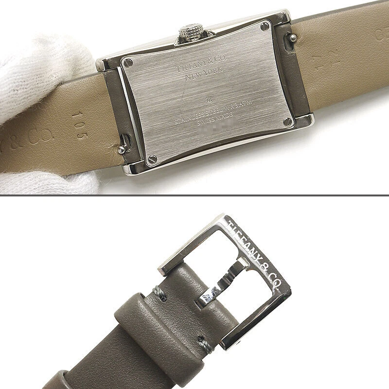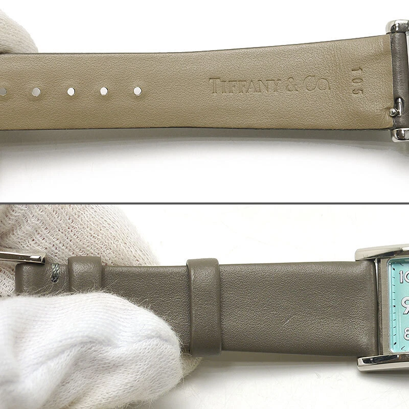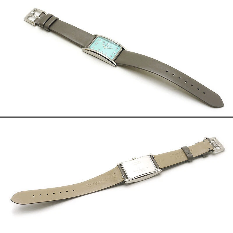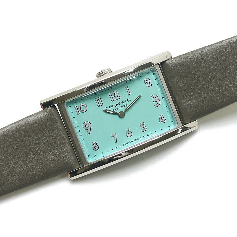 Tiffany Co East West Mini Women s Quartz SS Leather Blue Dial