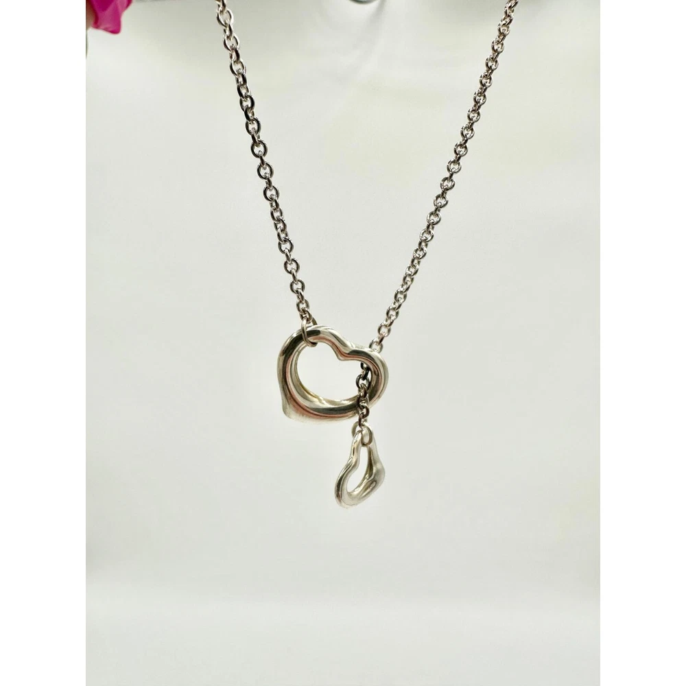 Tiffany & Co. Elsa Peretti Open Heart Lariat Sterling Silver Necklace - The simple evocative shape of the Elsa Peretti open heart designs celebrates the spirit of love ( from Tiffany & CO.) - 16 mm, 19.5" chain length - Sterling - Small amount of tarnish(shown) on part of chain from sitting unused, but will come off with a good cleaning - Never worn - Will come with Tiffany drawstring bag KEYWORDS: luxury designer jewelry heart tiffany