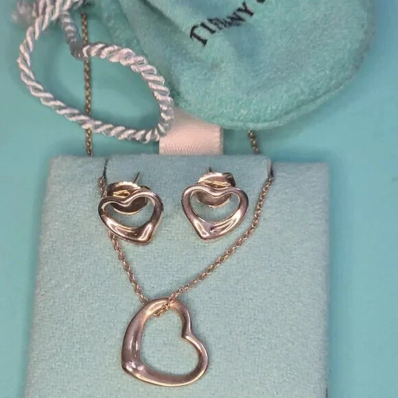 The simple, evocative shape of Elsa Peretti's Open Heart design celebrates the spirit of love. This set brings together the collection’s sterling silver pendant and stud earrings. Wear the designs together for maximum impact.This set comes with a keepsake jewelry box in Tiffany Blue®.Online exclusive in North AmericaIncludes a keepsake jewelry box in Tiffany Blue®Set includes one pendant and a pair of earringsSterling silverOn a 16" chainPendant 13 mm WideEarrings 8 mm wideSame Day Shipping