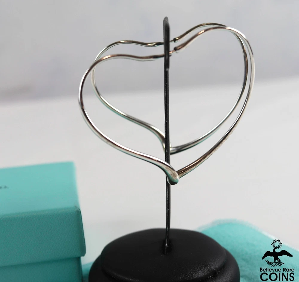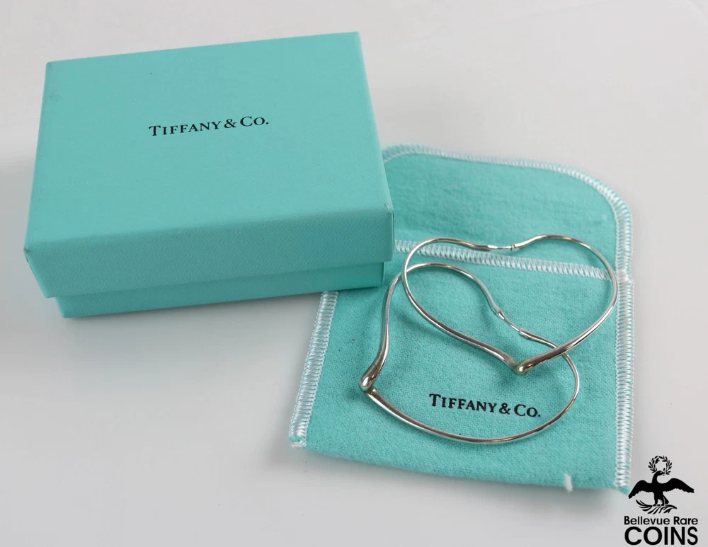 Tiffany & Co Elsa Peretti Sterling Silver Large Open Heart Dangle Earrings w/Box Tiffany & Co Elsa Peretti Sterling Silver Large Open Heart Dangle Earrings w/Box *Tiffany & Company is a worldwide name and elite jewelry company that spans almost 200 years old, with many artist and designer pieces that are sure to stun and captivate. Luxury and style are captured in every piece! *Specifications: Metal: Sterling .925 Silver Weight: 11.8 grams Length x Width: 52mm x 62mm Includes Box & Pouch *Please SEE PHOTOS for condition. If you should have any questions or concerns, please feel free to message us Monday - Friday 9:00am - 5:00pm via ebay’s “Ask question” button below. We add hundreds of new coin and bullion listings weekly. We encourage you to check out our other listings and our eBay auctions! Click Here To See All Bellevue Rare Coins Gold Bullion L istings Shipping & Returns: $4.00 USPS Ground Advantage shipping within the United States, unless otherwise noted in listing. Shipping and Handling: Domestic Shipments - Bellevue Rare Coins provides $4.00 United States Postal Service (USPS) Ground Advantage shipping with tracking for all shipments within the United States, unless otherwise specified. International Shipments - All International orders are shipped via eBay's International shipping program. International Shipping and handling fees will be determined at check out. Please contact us for shipment fee estimates. Combined Shipping - Bellevue Rare Coins offers combined shipping for domestic buyers who have won multiple auctions. We will send out updated invoices with discounted shipping costs on Monday mornings. Please wait until you receive the updated invoice from us to make your payment. We do not offer combined shipping for International Buyers. Return Policy - Bellevue Rare Coins has a 30-calendar day return policy. All returns must be shipped within 30 calendar days of receiving the product. All returned items must be in their original packaging. All return requests must be made within 30 calendar days of customer receiving the merchandise. When returning merchandise, please include the item number, as this will expedite the refund process. Bullion Returns - Customer may (at Bellevue Rare Coins' discretion) be required to pay for any market loss on their returns. Any market gain on refunds shall remain the property of Bellevue Rare Coins. Listing Information: Product Photography - Bellevue Rare Coins does not use stock photos. Items in our listings have been photographed by our team in-house, so you can trust that you're making an informed purchase, ensuring transparency and authenticity. Messages - We greatly value your messages and are committed to responding to your questions and inquiries as promptly as we can. Nevertheless, please understand that immediate responses may not always be possible. Kindly note that we are unable to respond to messages on weekends, but we assure you that your inquiries are important to us, and we will get back to you during our working hours as soon as possible. About Bellevue Rare Coins Bellevue Rare Coins is a family-owned and operated business who have been proudly offering their services since 1979. We are the leading rare coin and currency dealer in the Greater Seattle Area who also specialize in jewelry and estate items. We are focused on delivering a simpler experience to our customers. Providing a reputation that dramatically affects our consumers in a positive way. We ensure that our clients always feel welcome and valued.