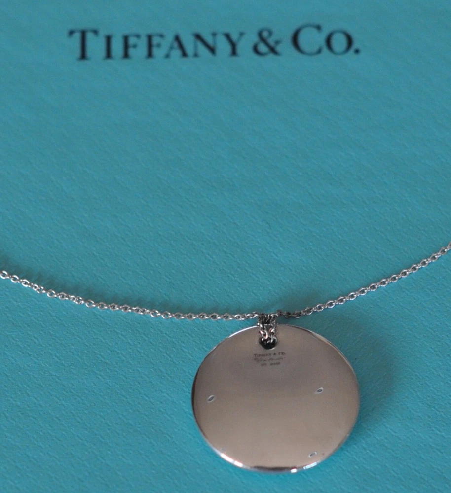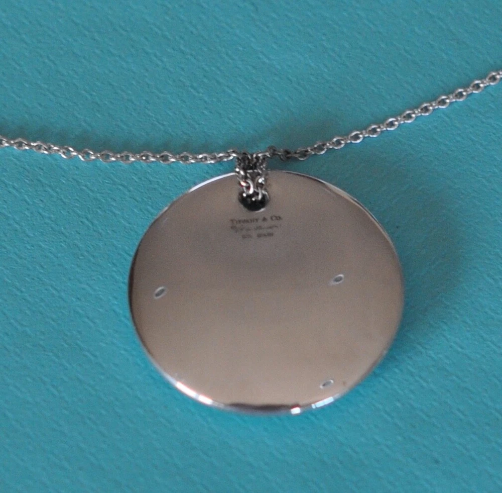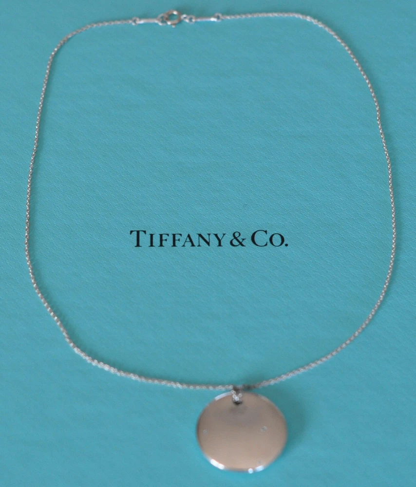 Tiffany & Co. Elsa Peretti Thumbprint Pendant and 15 1/4" Necklace. Sterling Silver 925. No box or pouch. All Our Tiffany & Co. Items are Authentic.