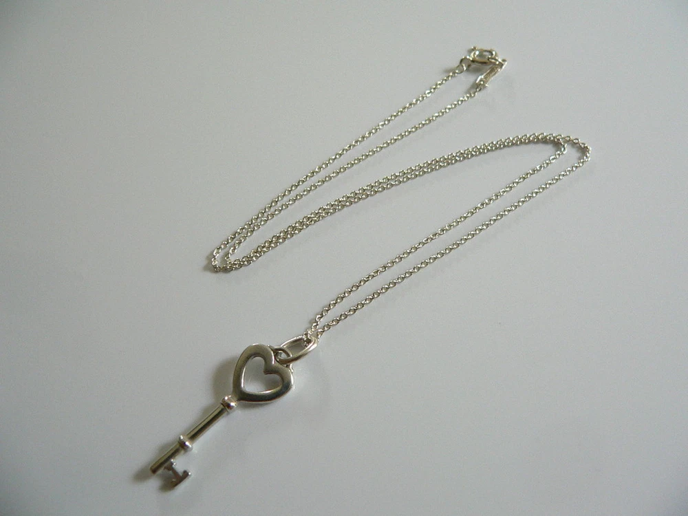 Overview: Offered for sale is a fantastic and very pretty Tiffany and Co. Sterling Silver Heart Key Necklace. Wonderful necklace that fits a lifestyle on the go -- the necklace can be worn to almost any occasion! Hanging from its beautiful Tiffany & Co sterling silver curb chain is a very pretty Heart Key pendant. It is simple and yet looks extremely elegant. Perfect way to say "Here's the key to my heart :)" without ever having to say a word - believe me, she will know! :) Imagine the piece with your professional office attire ... Now imagine it with jeans or weekend wear ... Perfect in every way! The item is very comfortable to wear, and is in very good condition. A classic Tiffany piece to start or add to your collection. Both key pendant and chain are fully hallmarked and guaranteed to be 100% authentic. Wonderful present for yourself or anyone you love! Will surely delight! Particulars: Size & Measurements: The key pendant is approx 1.25 inches. The chain is approx. 17 inches long. Metal & Hallmarks: T & Co. / 925 (on key pendant) Tiffany & Co. / 925 (on chain) Solid 925 sterling silver Please check out my other unique and interesting Tiffany items on sale.