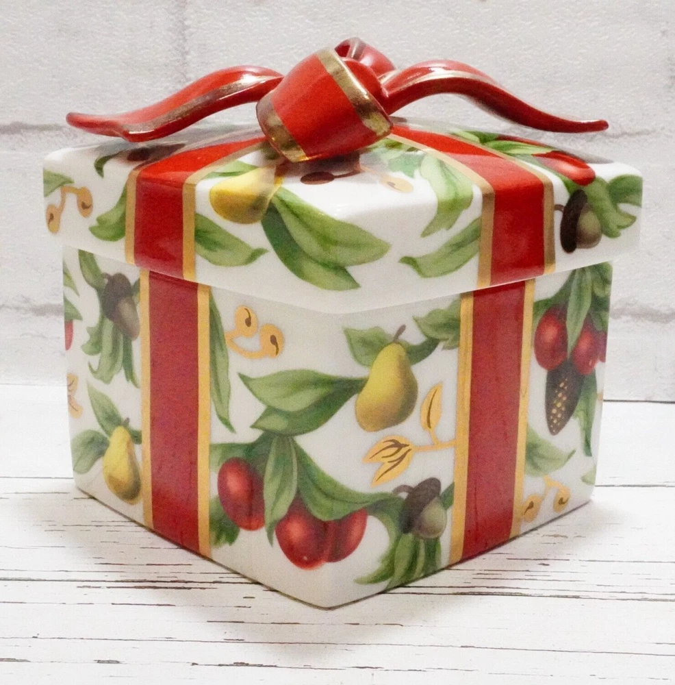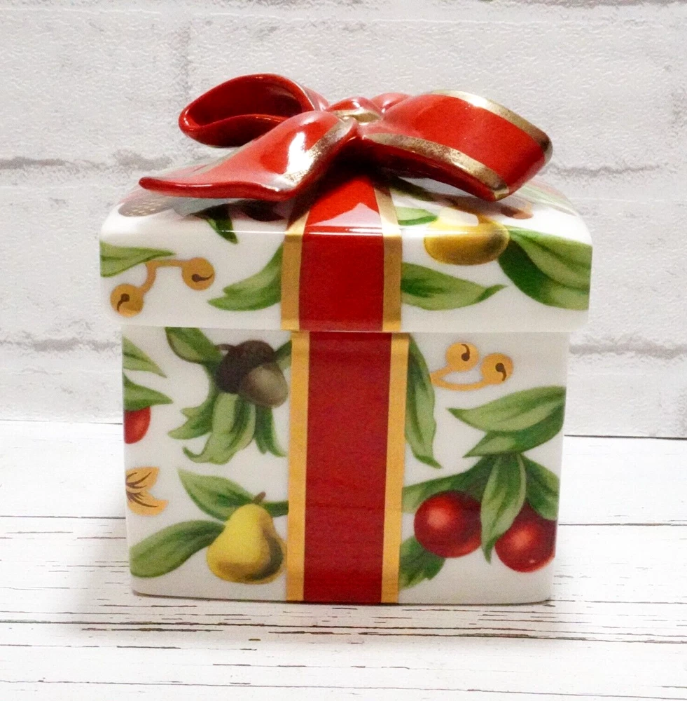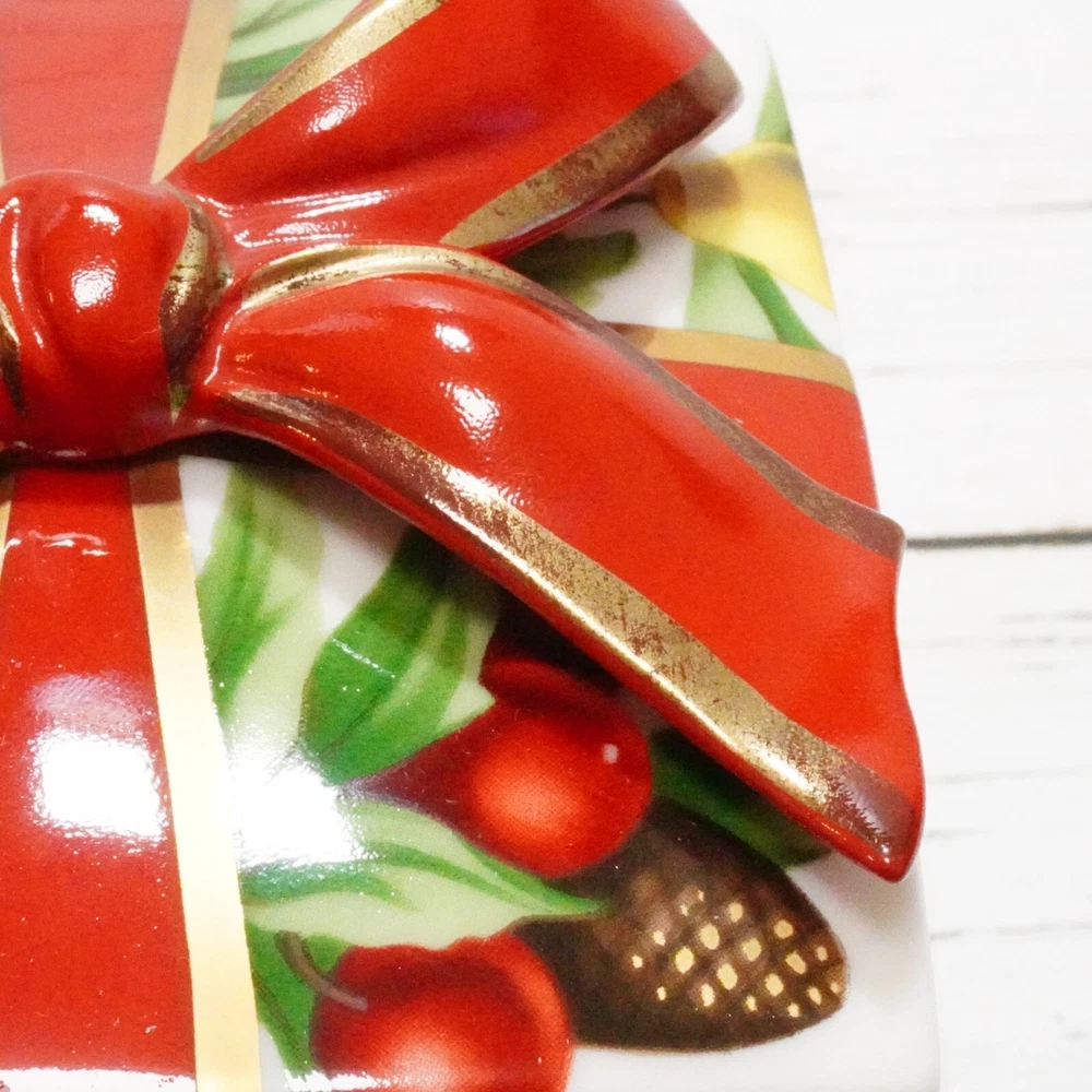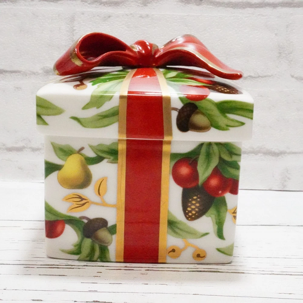 This adorable Tiffany & Co. trinket box is a festive holiday treasure! The classic red ribbon design on porcelain makes it a charming keepsake, perfect for storing small jewelry or holiday trinkets. The used condition is still lovely, and shipping is reliable with tracking—no worries there. A great gift for Tiffany fans or collectors!