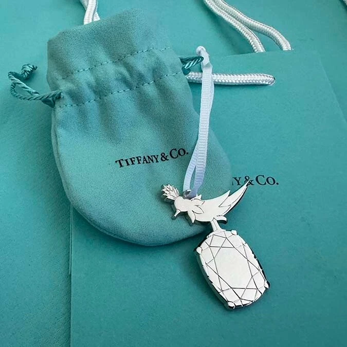 * TIFFANY'S ICONIC "SCHLUMBERGER DESIGNED " BIRD ON A ROCK " .... *(ORIGINAL DESIGN DEPICTS A BIRD ON A JEWEL, GEMSTONE, DIAMOND, SAPPHIRE, etc.)* Tiffany & Co. * CHRISTMAS SEASON LIMITED-EDITION CHARM OR ORNAMENT * NOVELTY GIFT...* Tiffany Artistic Design ... Perfectly Wonderful Addition For Your Treasured Christmas Collection.... . Delightful addition for your Christmas Tree as a Small Ornament or Holiday Decor...or as a Charm to go with your T&C Purse or Bag, etc....For where ever you imagination envisions it to be.... Made of some type of metal with a shiny silvery-mirror like finish... (c)TIFFANY & CO on back of Bird on a Rock. Tiffany White Silk Hanging Ribbon Tiffany & Co Blue Pouch Tiffany & Co Small Blue Shopping Bag NEW .... 2024 ... ** PLEASE see photos above as part of ornament/charm description. *Please email any questions you may have. *Carefully wrapped for Shipping Via USPS MAIL. No International Shipping. Shipping in US only. *Please see our other wonderful Tiffany & Co "Treasures" & Ornaments being offered on Hawaiistrong now...more being listed..... * THANK YOU & HAPPY ALOHA HOLIDAYS! * "Fly into the New Year"....