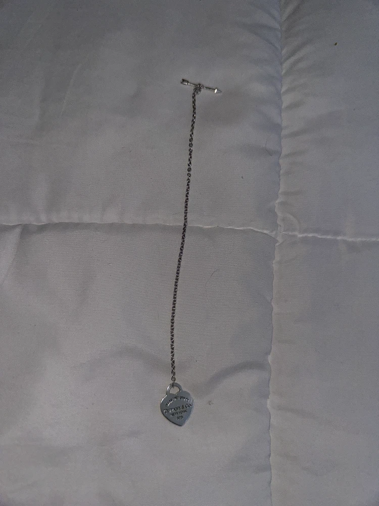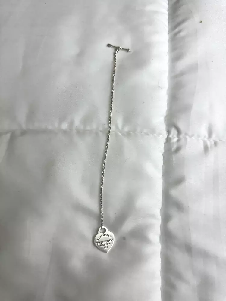 This sterling silver bracelet features a sterling silver arrow-shaped toggle closure that makes a perfect pair with the iconic heart tag. Sterling silver, size large, 7 inches long, motif size, small, toggle closure. Pre-owned but still in good condition. Comes with an original Tiffany Box and white ribbon. Original price is $285.