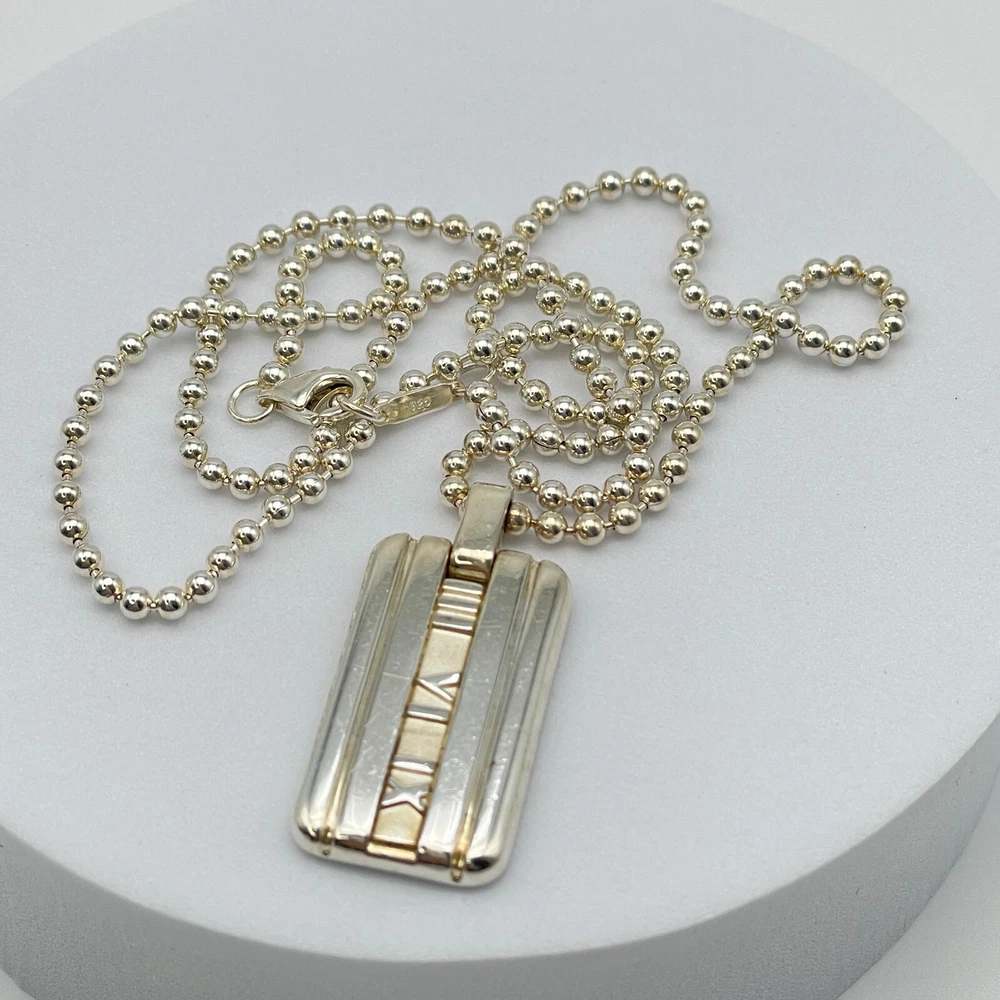 Tiffany & Co. Necklace Atlas Plate Silver 925 Ball Chain With Box #A1114 Description About This Items Brand : Tiffany & Co. Item : Necklace Pendant Shape : Atlas Plate Color : Silver Pendant Top Size : 0.61×1.07in Chain Length : 19in Material : Sterling Silver 925 Appearance Very minimal signs of use. Some minor age-related stains might be present. Please check the photos. Condition Pre-owned Included Items Box All our items are 100% authentic Shipping We always send the item with a tracking number. So please place an order without any concern on delivery. You can always track the delivery status. Shipping is only available to the address registered in eBay. If you want us to send another address, please change your address on eBay and then place an order. Shipping is available from Monday to Friday. Weekends are not available because freight (shipping) companies are closed. We do not mark merchandise values below value or mark items as ?gifts? ? Japan, US and International government regulations prohibit such behavior. If your address is in the remote areas defined by the freight (shipping) company, please pay the additional shipping fees with PayPal. About Importer's Obligation Import duties, taxes, and charges are not included in the item price or shipping cost. These charges are the buyer's responsibility. Please check with your country's customs office to determine what these additional costs will be prior to bidding or buying. Thank you for your understanding.