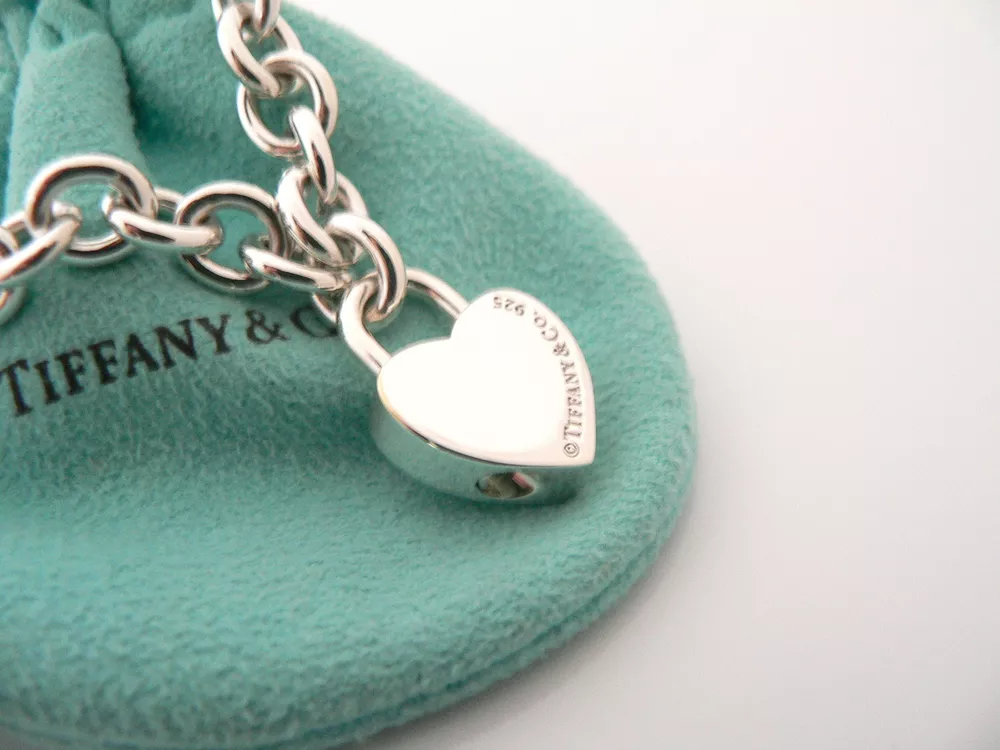 Overview: Offered for sale is a wonderful and gorgeous Tiffany & Co. Sterling Silver Notes Heart Padlock Bracelet. Hanging from its bright Tiffany silver chain is a classic and very pretty Notes Heart Padlock charm! A classic Tiffany piece that any girl will adore! The Heart Padlock charm opens and closes, and thus allows you to wear the charm on a necklace or as part of another charm bracelet! Super cool and versatile piece! It is simple, elegant, and classic all rolled into one piece. Imagine the piece with your professional office attire ... Now imagine it with jeans or weekend wear ... Perfect! It is in excellent condition! It is THE classic Tiffany piece to start or add to your collection. As always, the item is fully hallmarked in two places (middle link of the bracelet/ Heart Padlock Charm) and is guaranteed to be 100% authentic. Everyone needs a signature Tiffany piece! Here is the perfect one just for you. The piece will come with its Tiffany pouch as shown! Perfect and ready for gifting! Wonderful present for yourself or anyone you love! Will surely delight! Particulars: The bracelet is 7.75 inches from end to end. Metal & Hallmarks: Tiffany & Co. / 925 (on Heart padlock charm) T & Co. / 925 (Middle Link of Bracelet) Solid 925 sterling silver Please check out my other unique and interesting Tiffany items on sale.